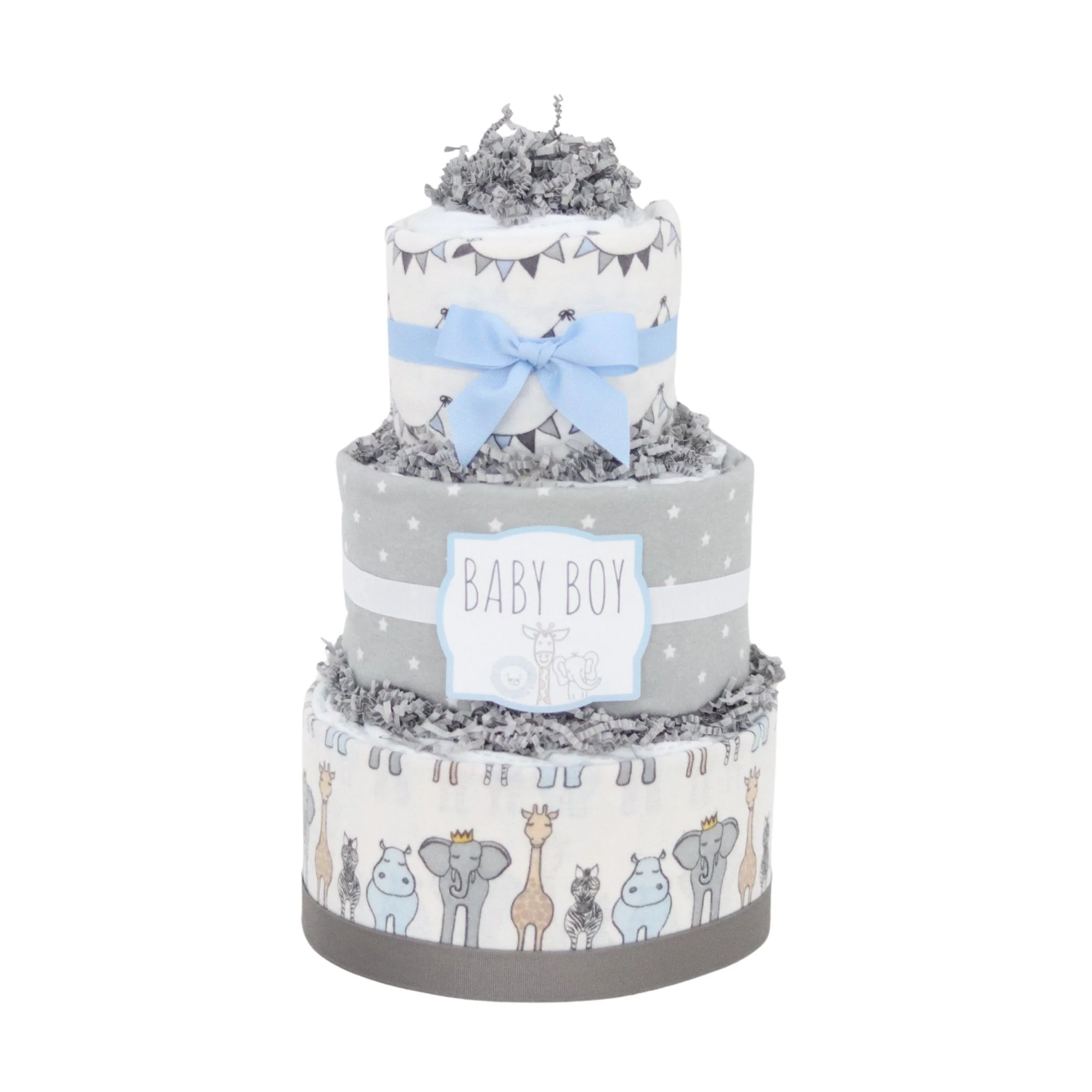 Celebrate the arrival of a little boy�with our�Royal Safari�Diaper Cake. Bursting with 35 ultra-soft Pampers Swaddlers size 2 diapers and three cozy cotton receiving blankets, this delightful creation isn't just a gift��it's a bundle of love and convenience for the new parents. Overflowing with charm and crafted with care, it's the perfect way to welcome the newest addition to the family.