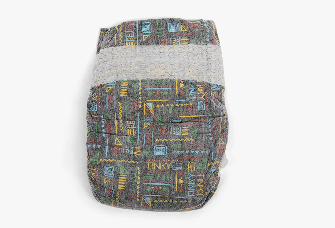 They��re clean, they��re conscious, they��re cultural and most of all comfortable for your baby.� These plant-based unisex diapers with our Motherland-inspired print, are colorful and bold, and represent who we are by showcasing our name, ��TinkyPoo,�� in tribal or kente-styled lettering, along with distinctive Afrocentric shapes, patterns and accents.�