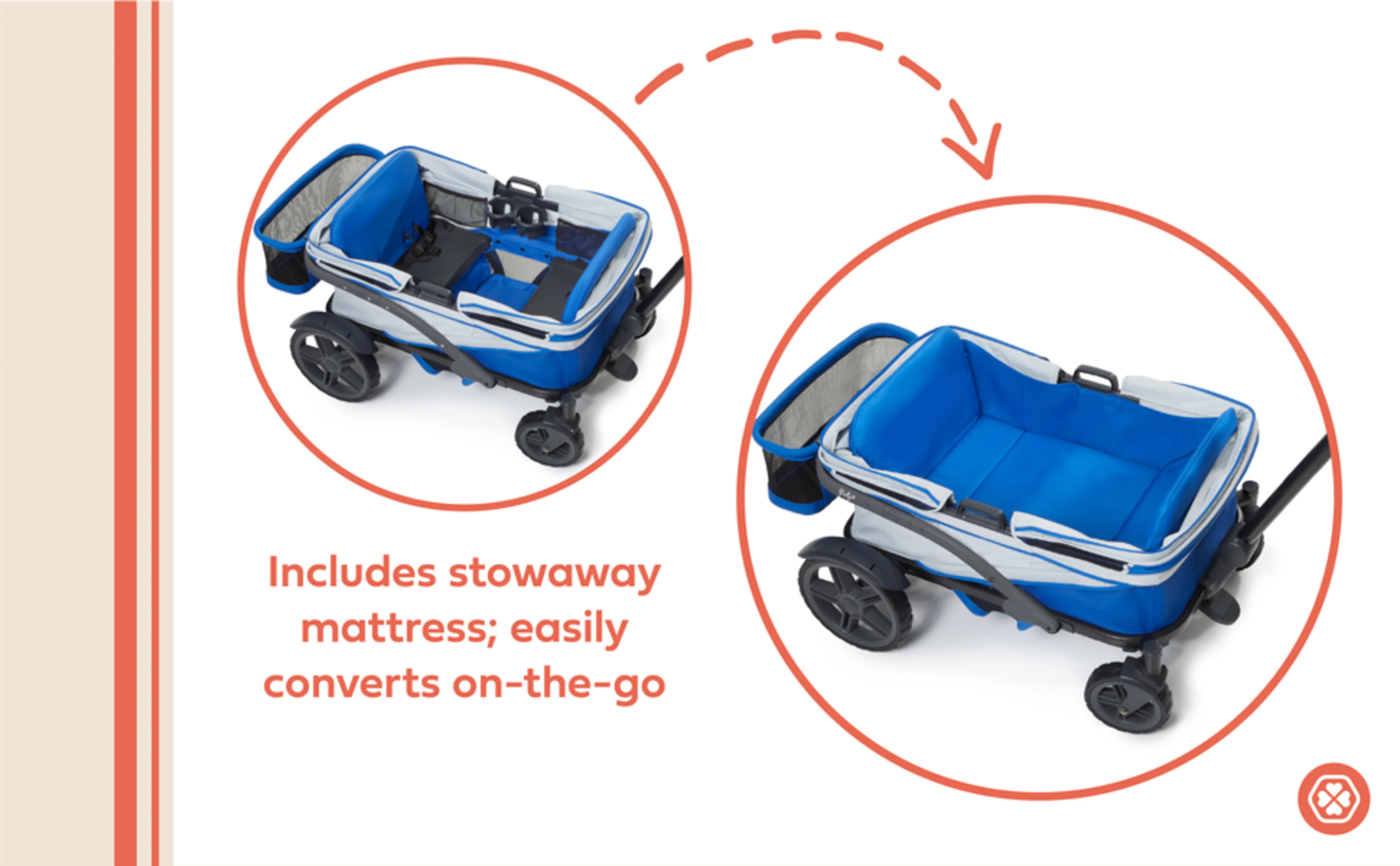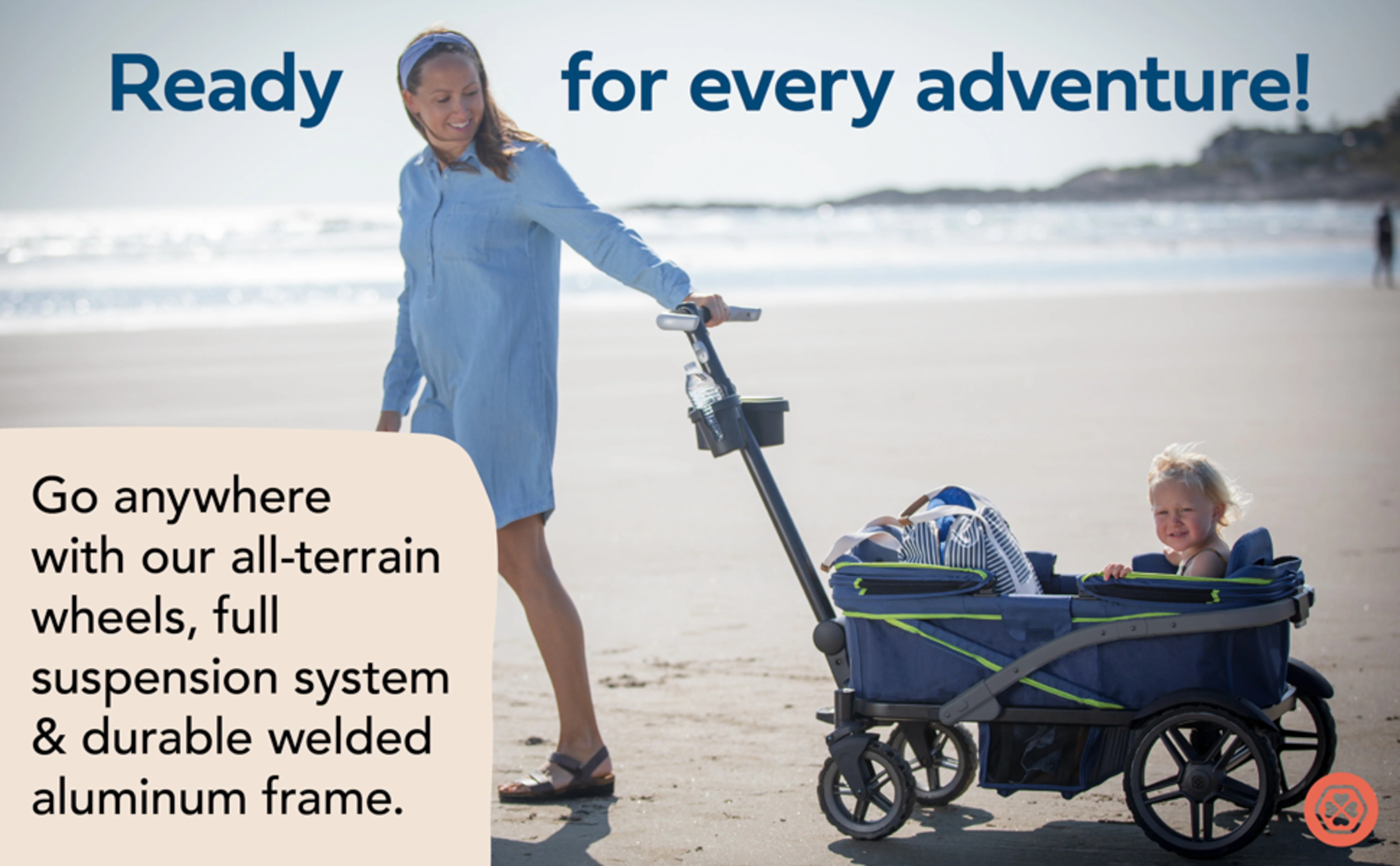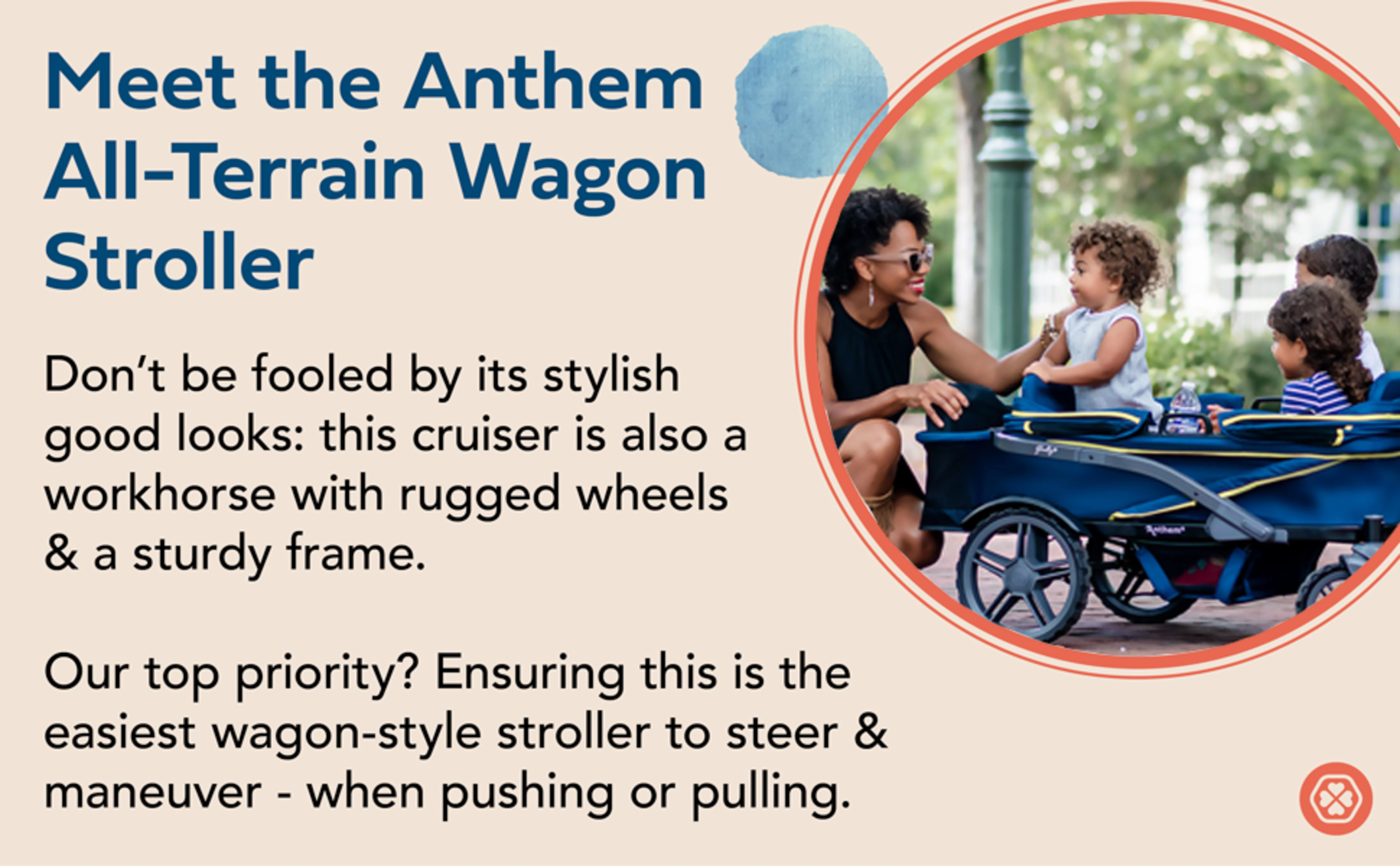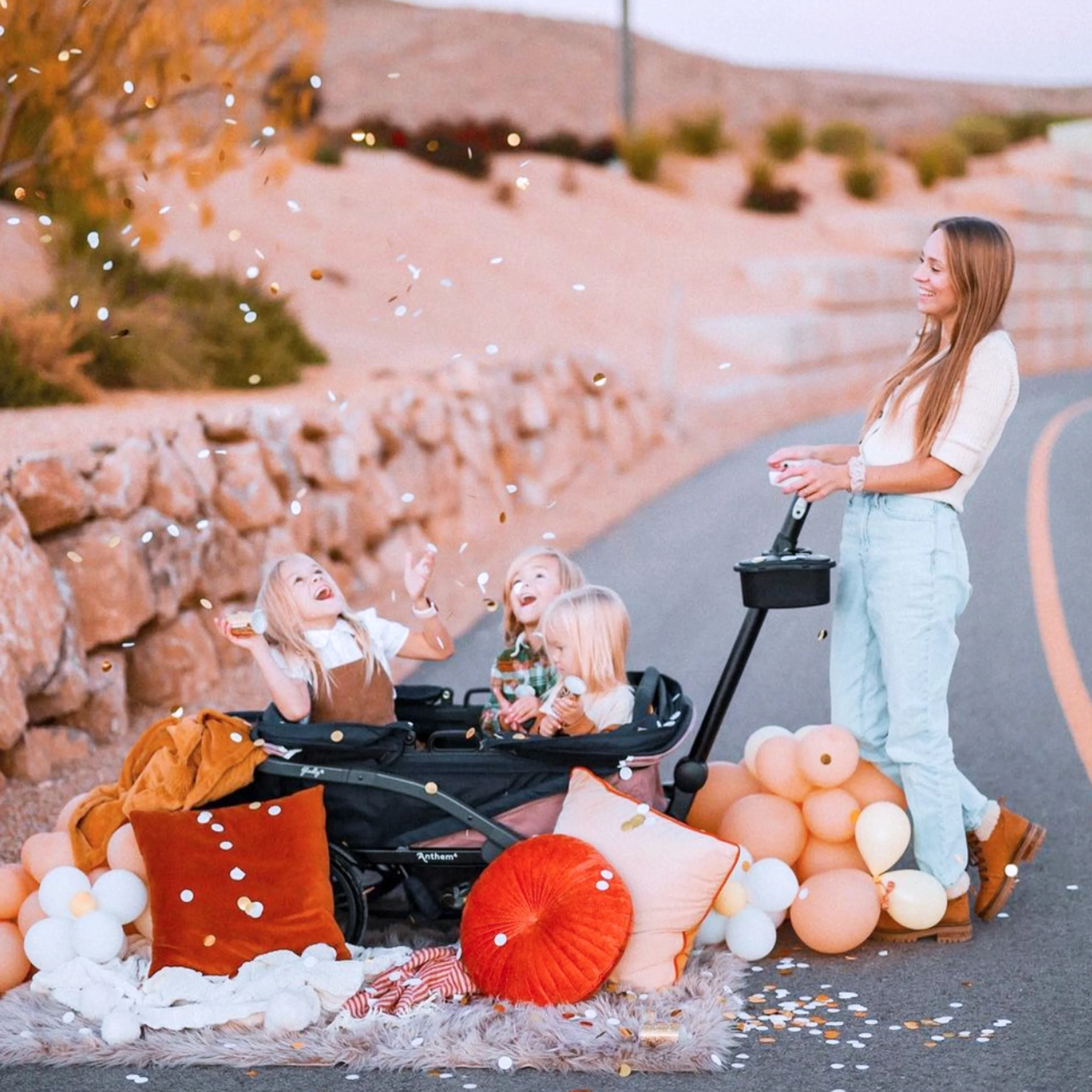 Need room for four? The 4-Seater version of our Anthem™ All-Terrain Wagon Stroller has got you covered. Don't be fooled by its stylish good looks: this cruiser is also an all-terrain workhorse with rugged wheels and a sturdy frame. Plus, "extras" like two XL canopies, parent cup holder and lounge pad come standard!