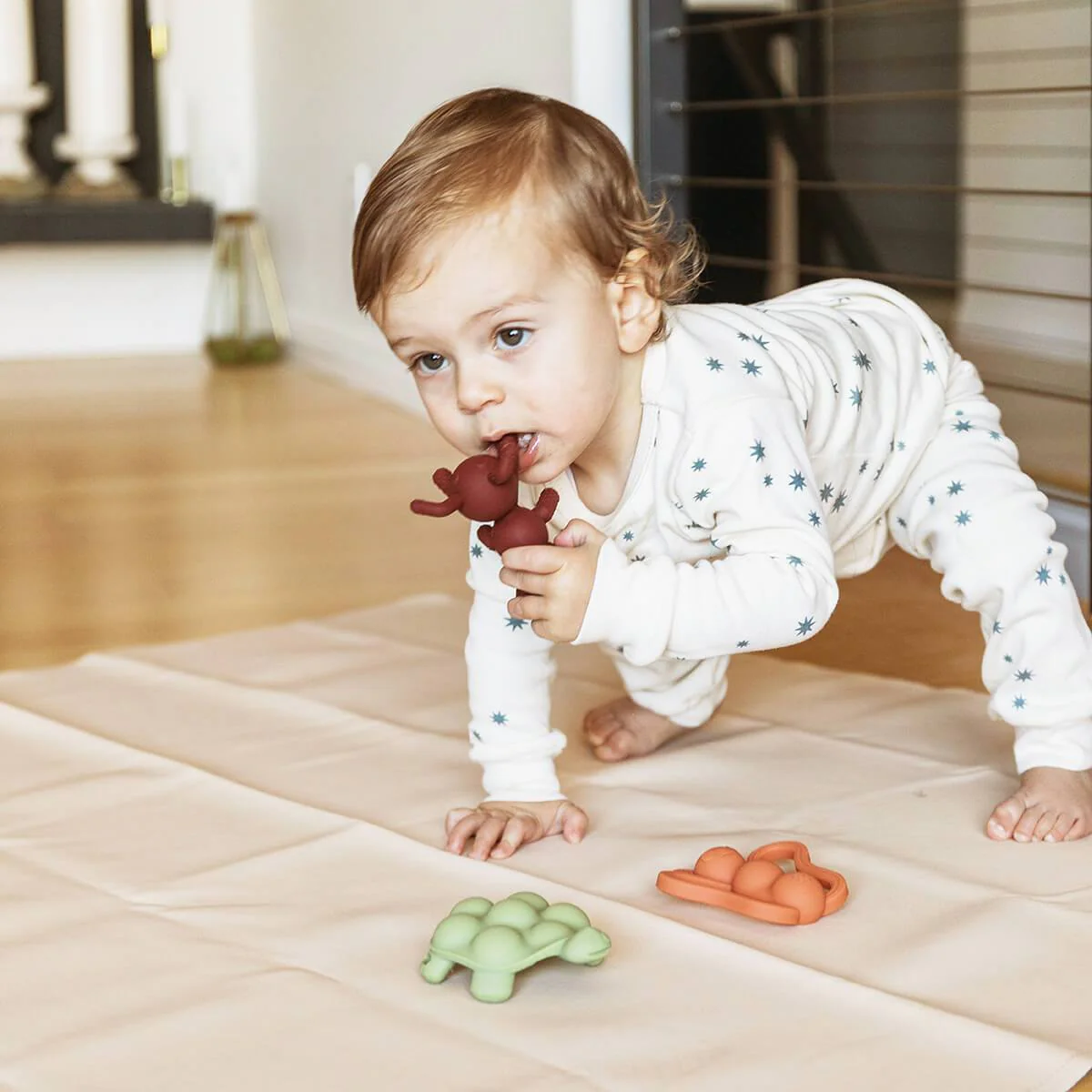 • Two uses: 3+ months as a teether for soothing sore gums, and 12+ months as a toy for bubble popping play.
