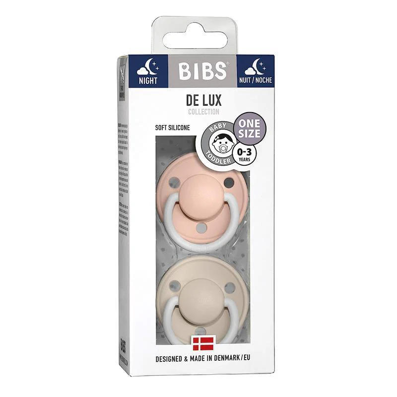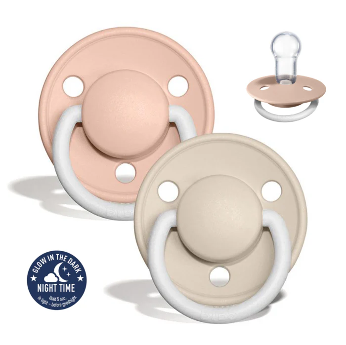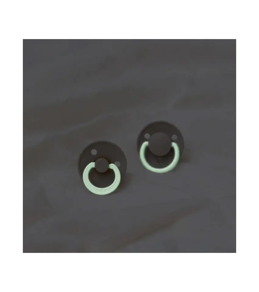 BIBS GLOW Collection has a practical glow feature. It makes it easy for both parents and little ones to find the pacifier in the dark. Simply hold the pacifier up to a lamp for 5-10 seconds to activate. The luminescent effect lasts for 8+ hours and the glow is subtle to not wake baby.