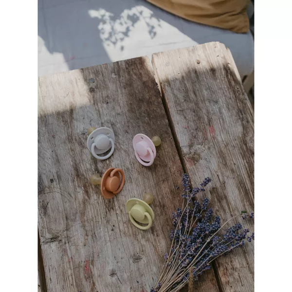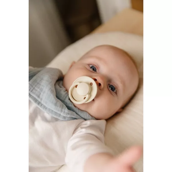 The round, light S child is turned away from the child's face. This ensures airflow to the delicate skin around the mouth and reduces irritation. The natural design of the pacifier imitates the shape of the mother's breast.