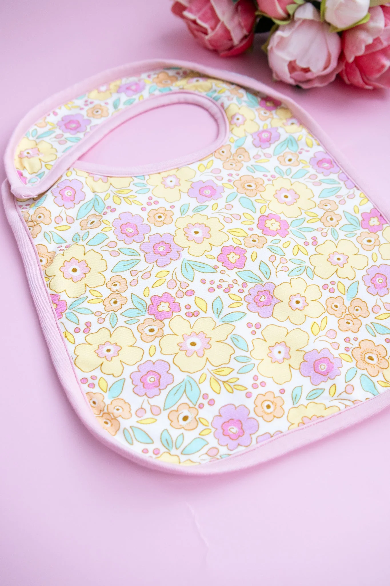 This soft, bloomin' baby bib is perfect for catching drool while adding a touch of spring to any outfit. The beautiful floral print and easter designs make for a dreamy accessory for your little one. Say goodbye to messy meal times and hello to adorable style!