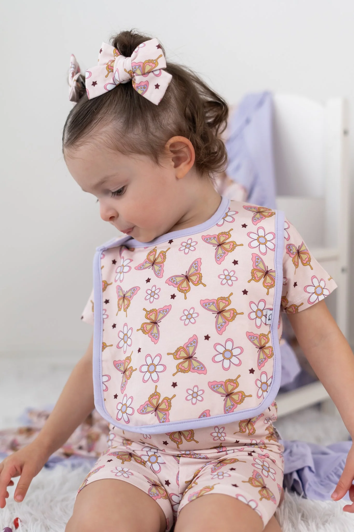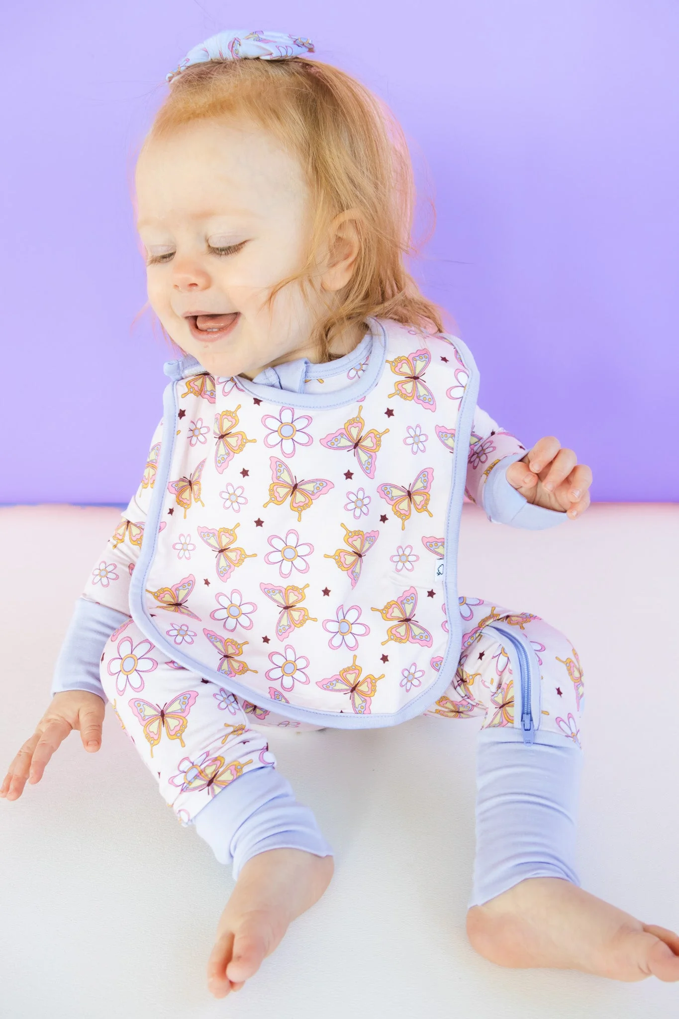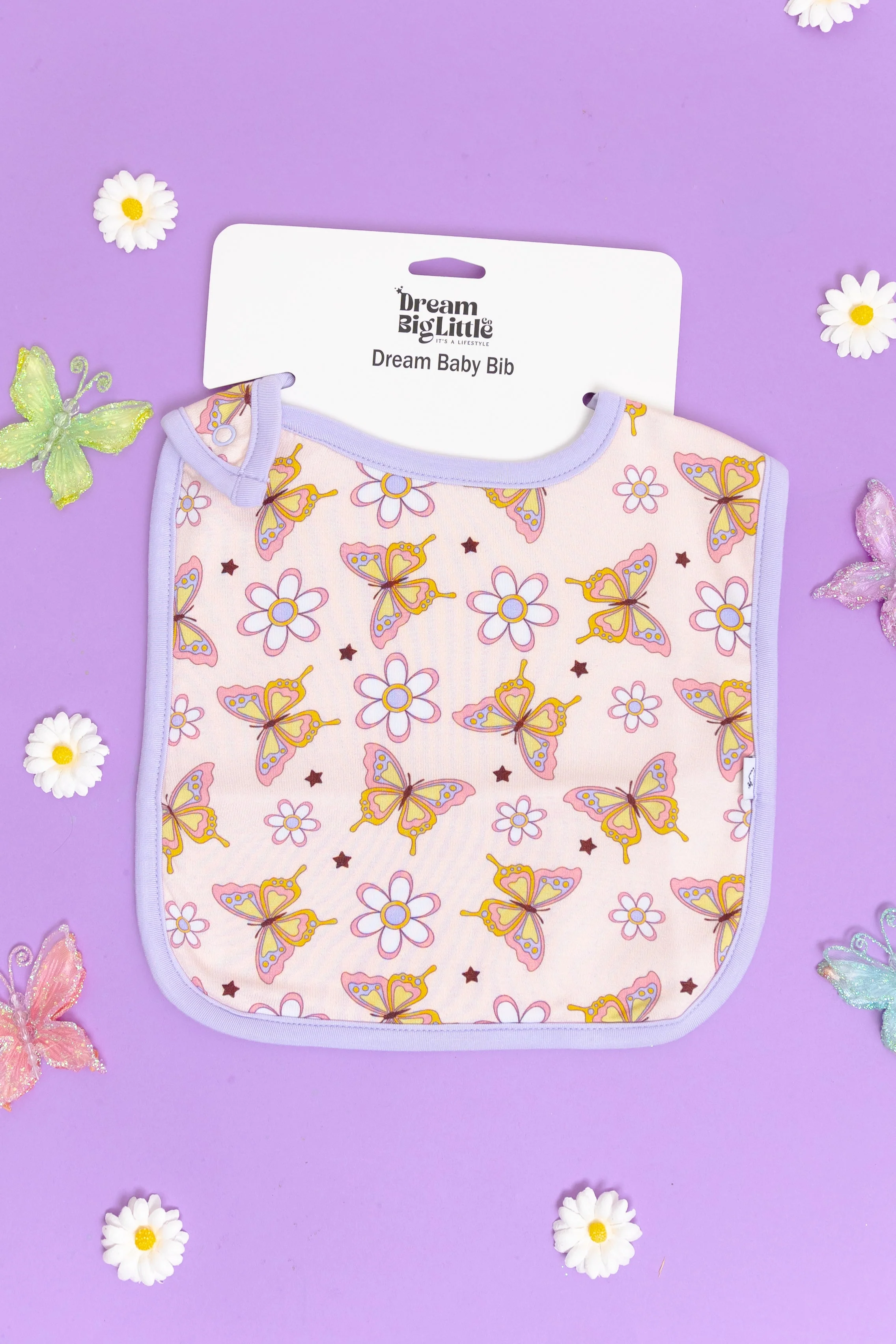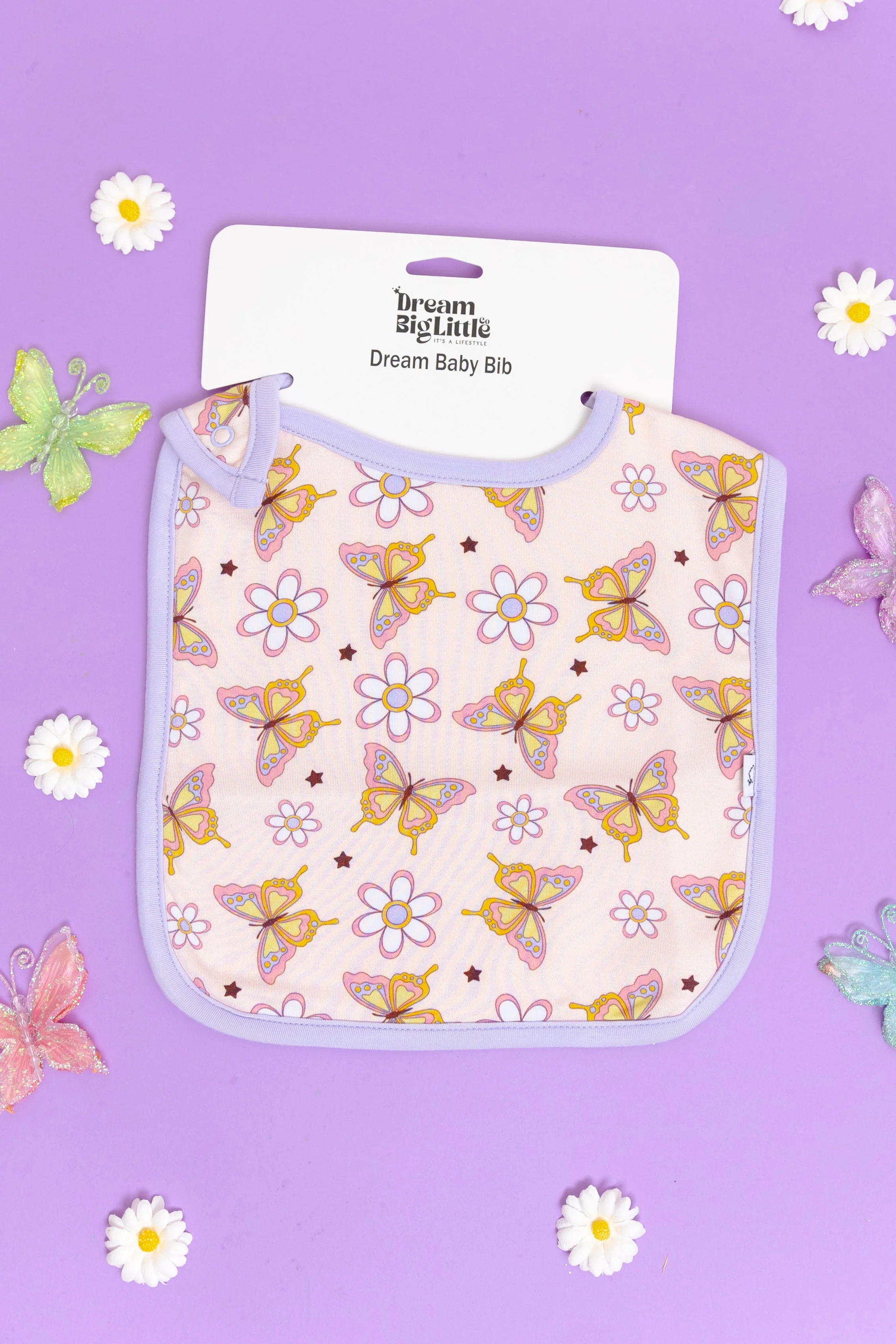 This adorable Blossomin' Butterfly Dream Baby Bib features a playful butterfly pattern and is made of soft bamboo material for ultimate comfort. Keep your baby clean and stylish at mealtime with this fun and functional bib!