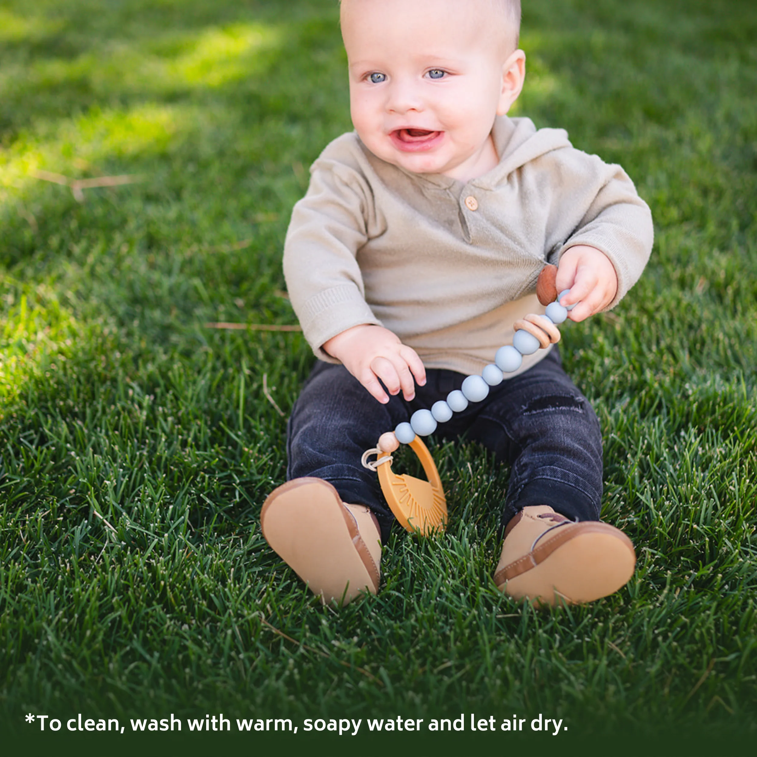 What's Included: 1 Silicone Bead & Wood Ring Pacifier Clip