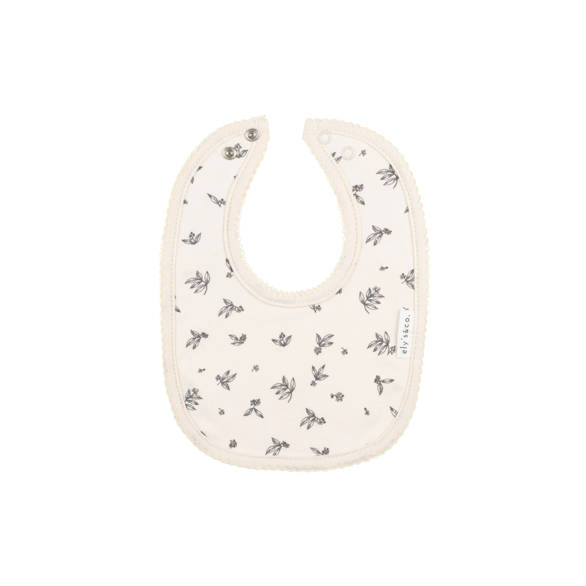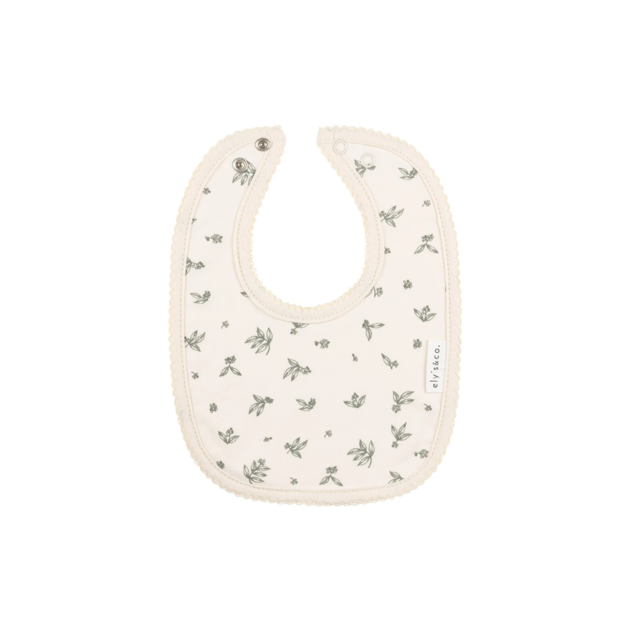 Stay clean and stylish with the Ely's & Co. Brushed Cotton -Elderberry Leaf Collection - Bib. Made with soft brushed cotton, this bib features an elegant elderberry leaf design. Perfect for mealtime messes, it's a must-have accessory for any trendy baby.