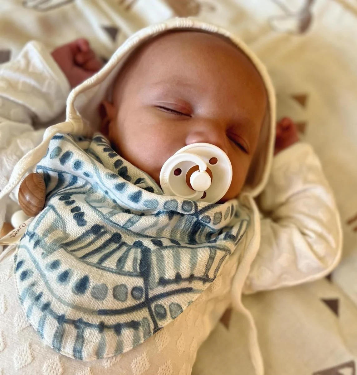 The Caspian three piece Muslin Bib set is the perfect addition to any nursery. These beautiful bibs are also soft and absorbent, washable, and feature handmade details. The baby bibs also have snaps that can be adjusted as your baby gets bigger. If you’d like an entire matching set, they also come in matching burp cloths, swaddle blankets, and more.