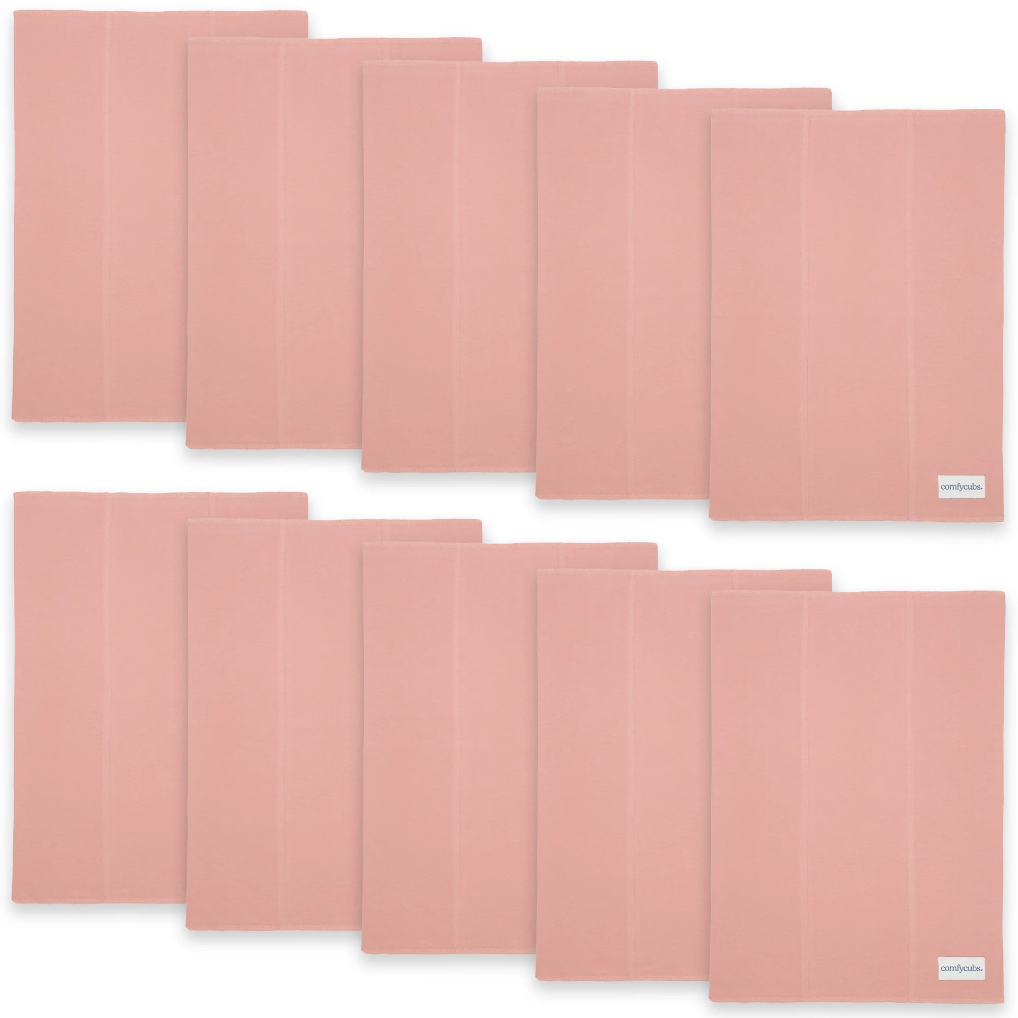 This pack contains 6x & 10x burp cloths, measuring 16" x 12" inches each. The cloths are 100% Cotton and have 2 layers of extra absorbent, soft material.