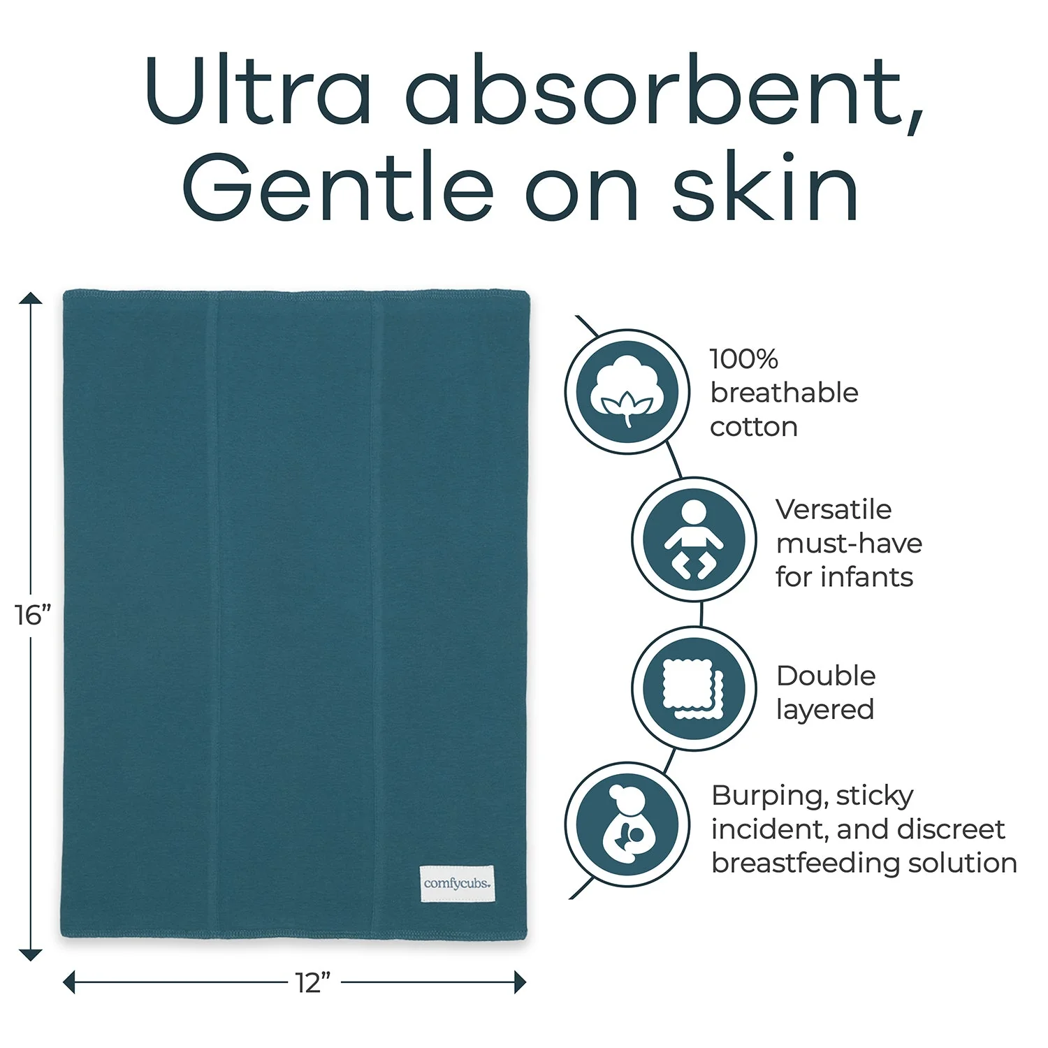 • This pack contains 6x & 10x burp cloths, measuring 16" x 12" inches each. The cloths are 100% Cotton and have 2 layers of extra absorbent, soft material.