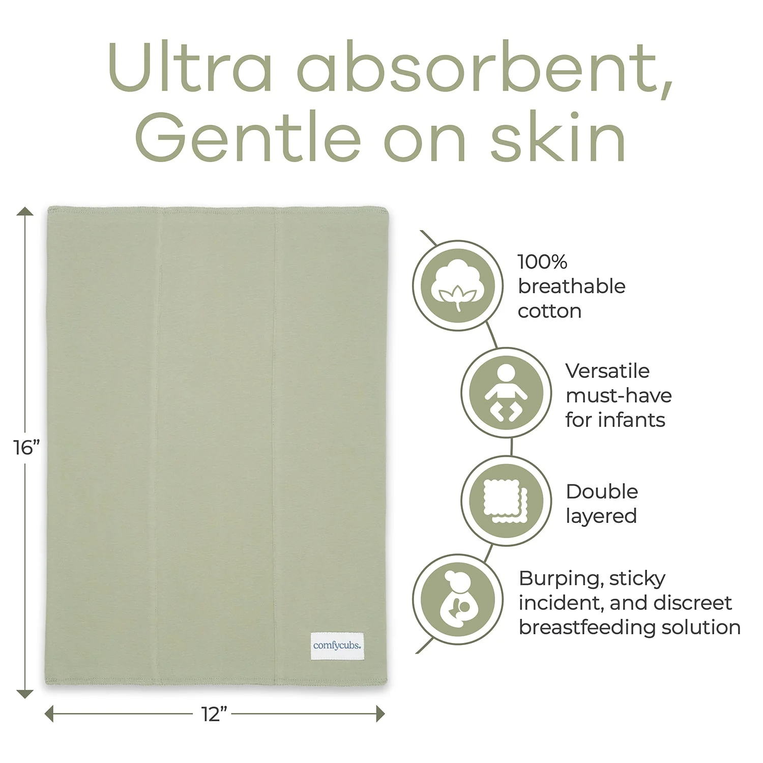Comfy Cubs Cotton Burp Cloths - Sage