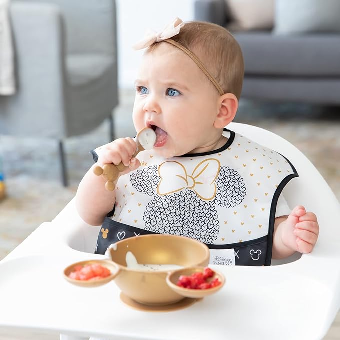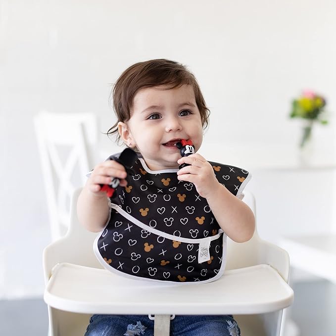 The Bumkins SuperBib baby bib saves you from the feeding mess! Perfect for little eaters transitioning from purees to soft foods and solids during baby-led weaning. Bibs attach over the back of the shoulder with a hook and loop for a quick, adjustable, and tug-proof fit.