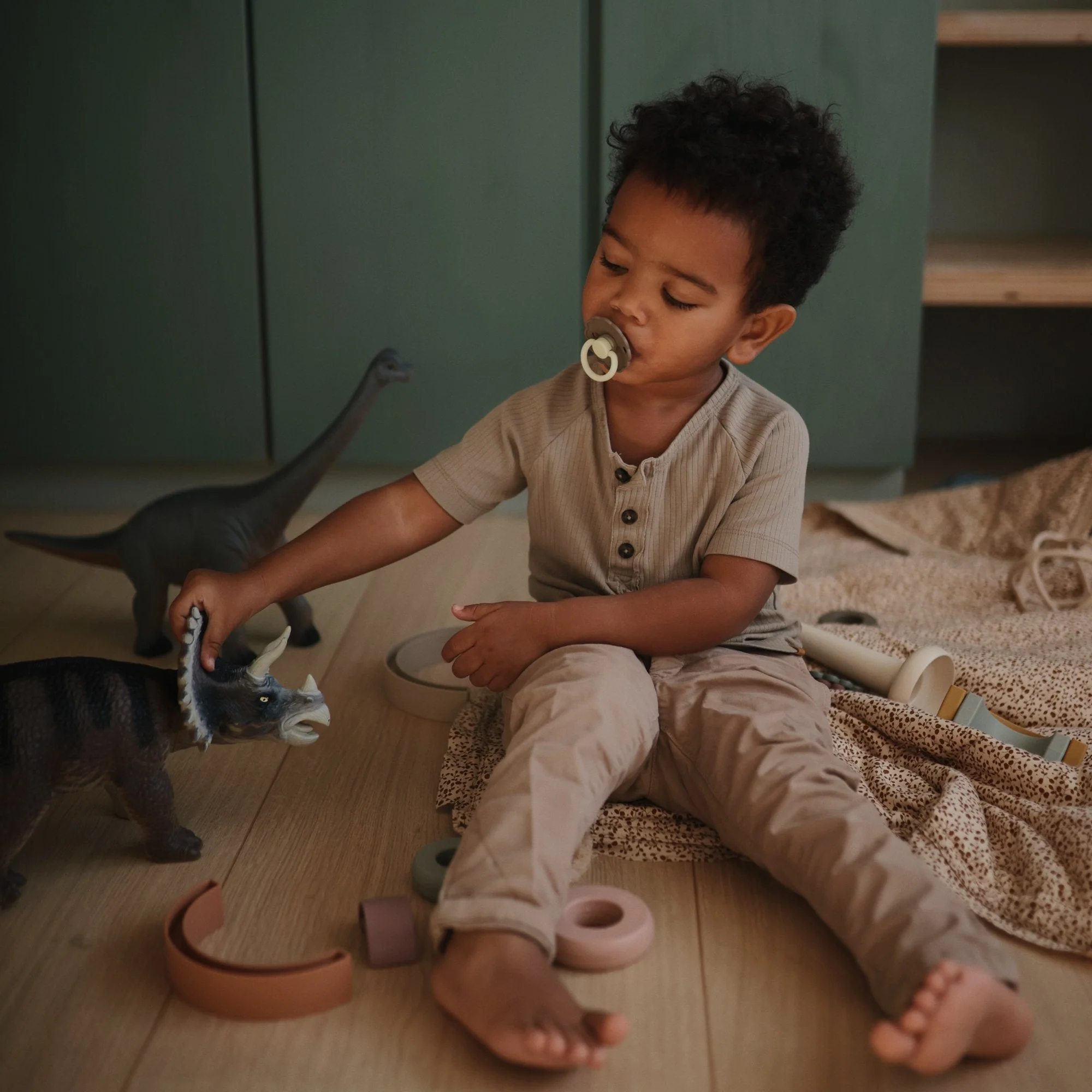 - Pacifier ring and knob glow in the dark for easy visibility at night.