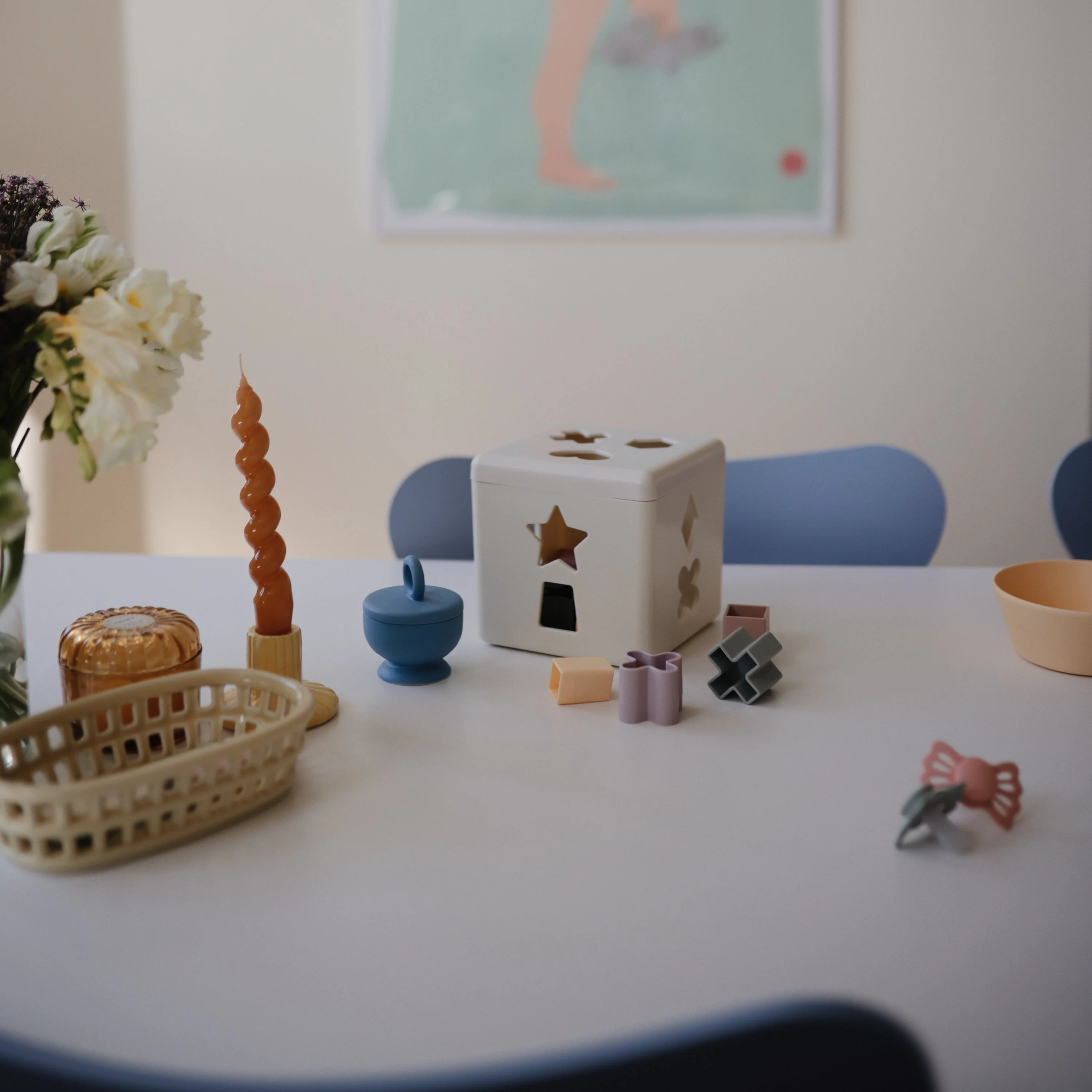 FRIGG Lucky is symmetrical with a slightly flattened teardrop-shaped nipple. The symmetrical design always fits correctly in baby’s mouth, regardless if it is facing up or down. FRIGG Lucky pacifiers have a flatter neck to minimize pressure on the palate and gums, which reduces the risk of crooked teeth and supports proper development of baby’s mouth and jaw.