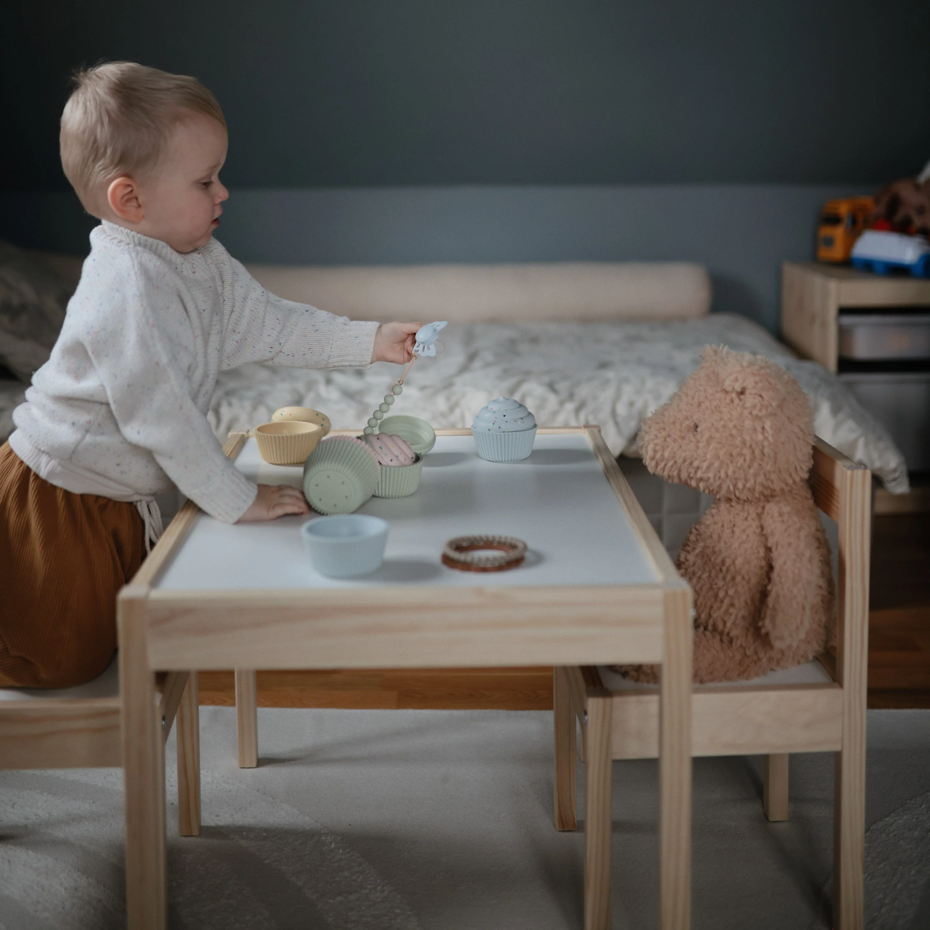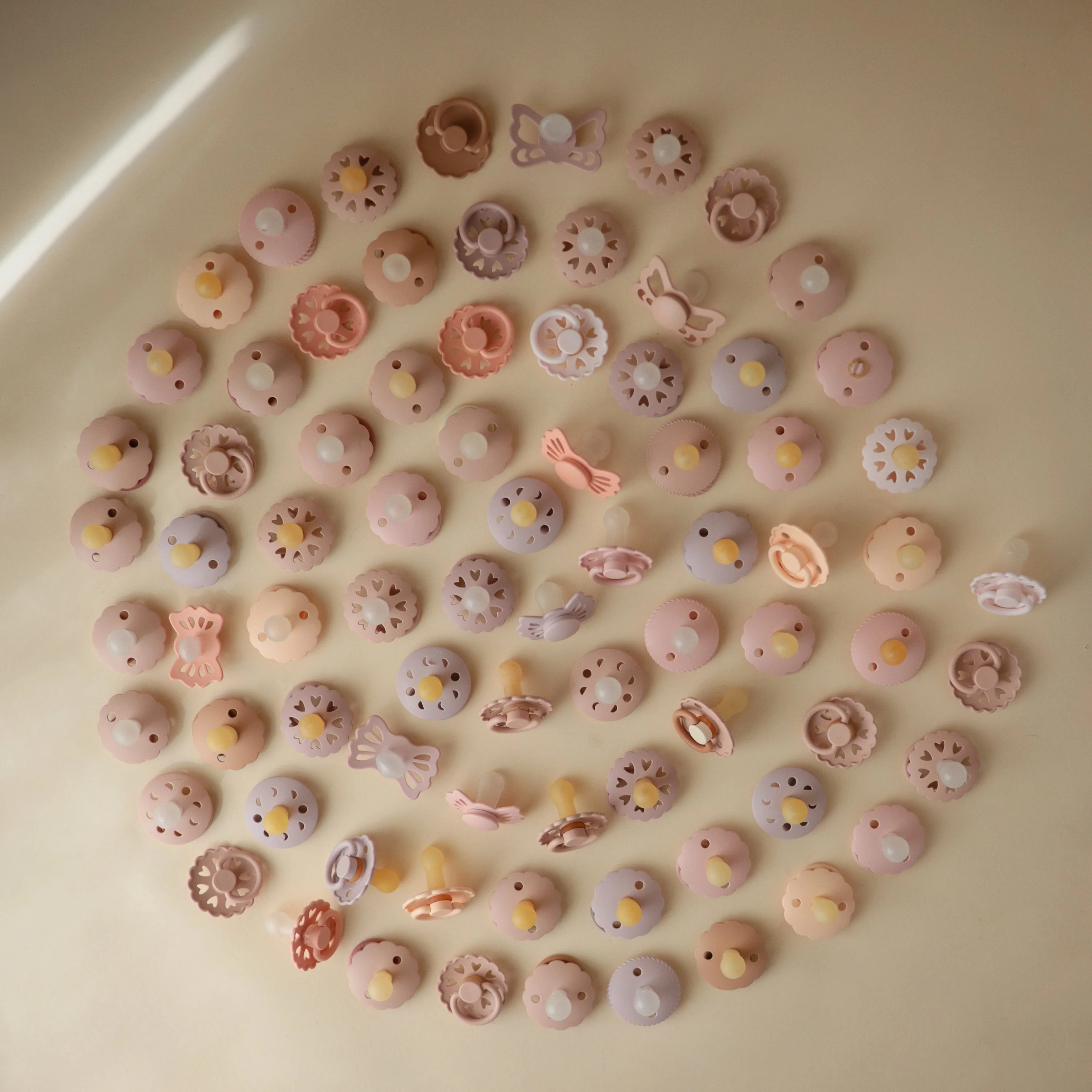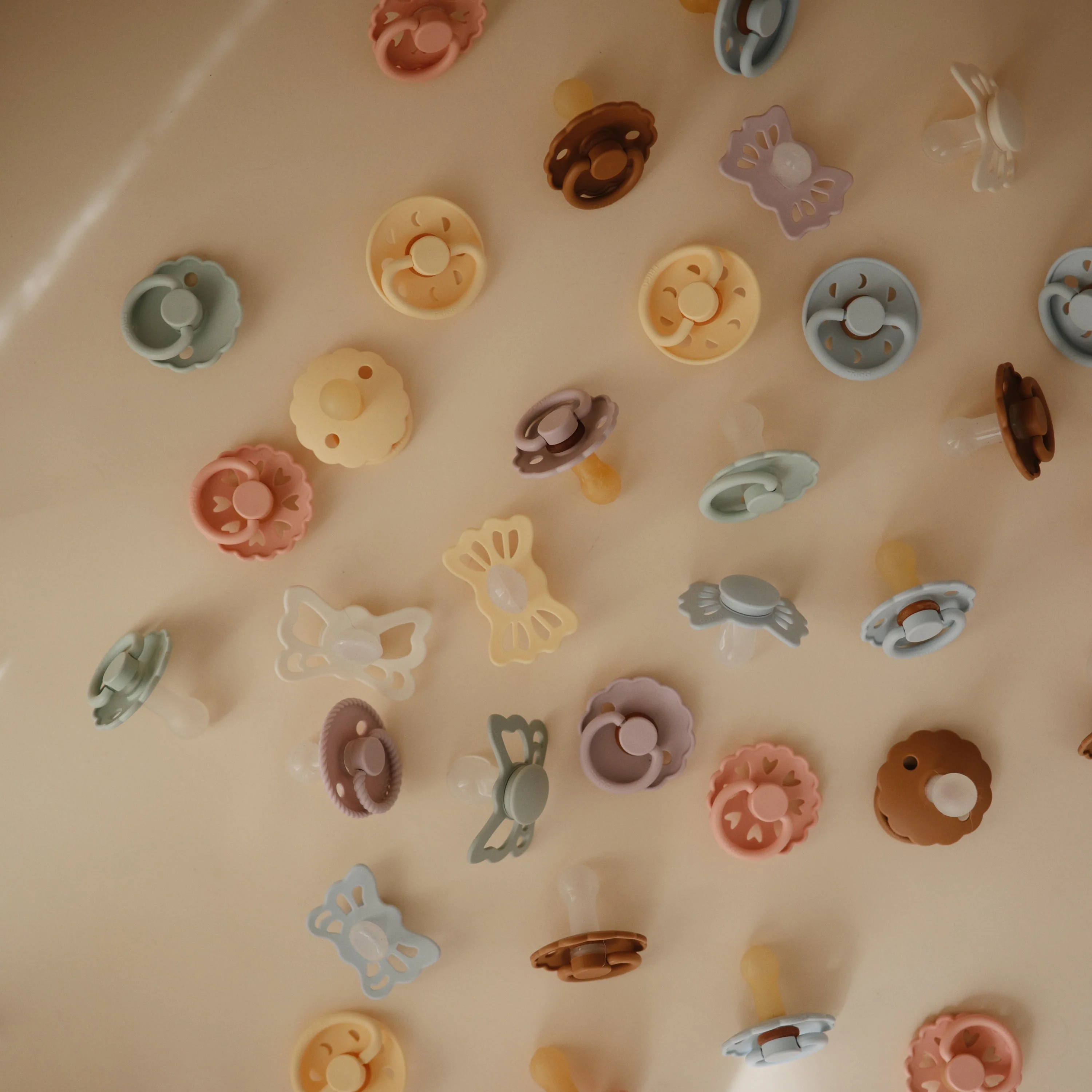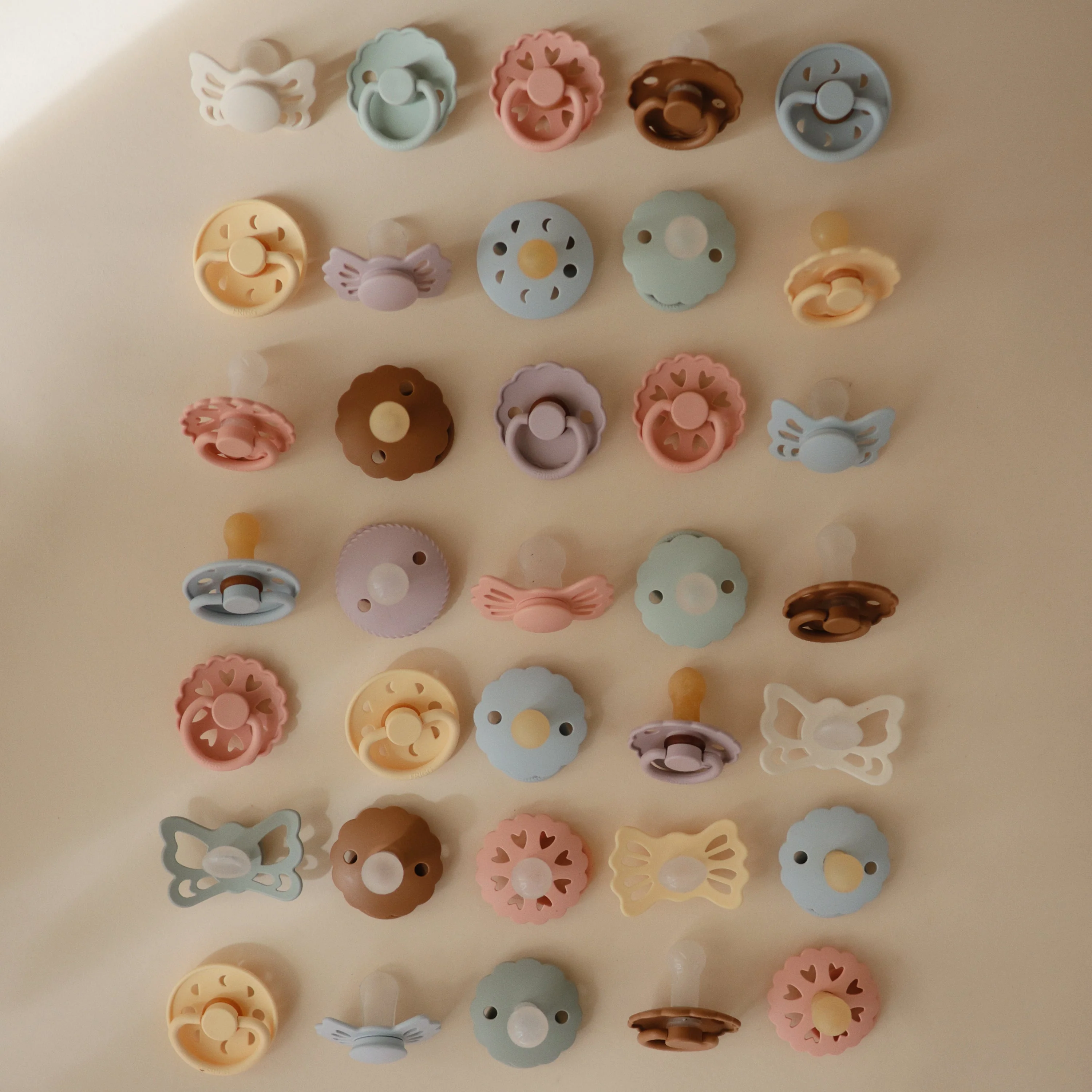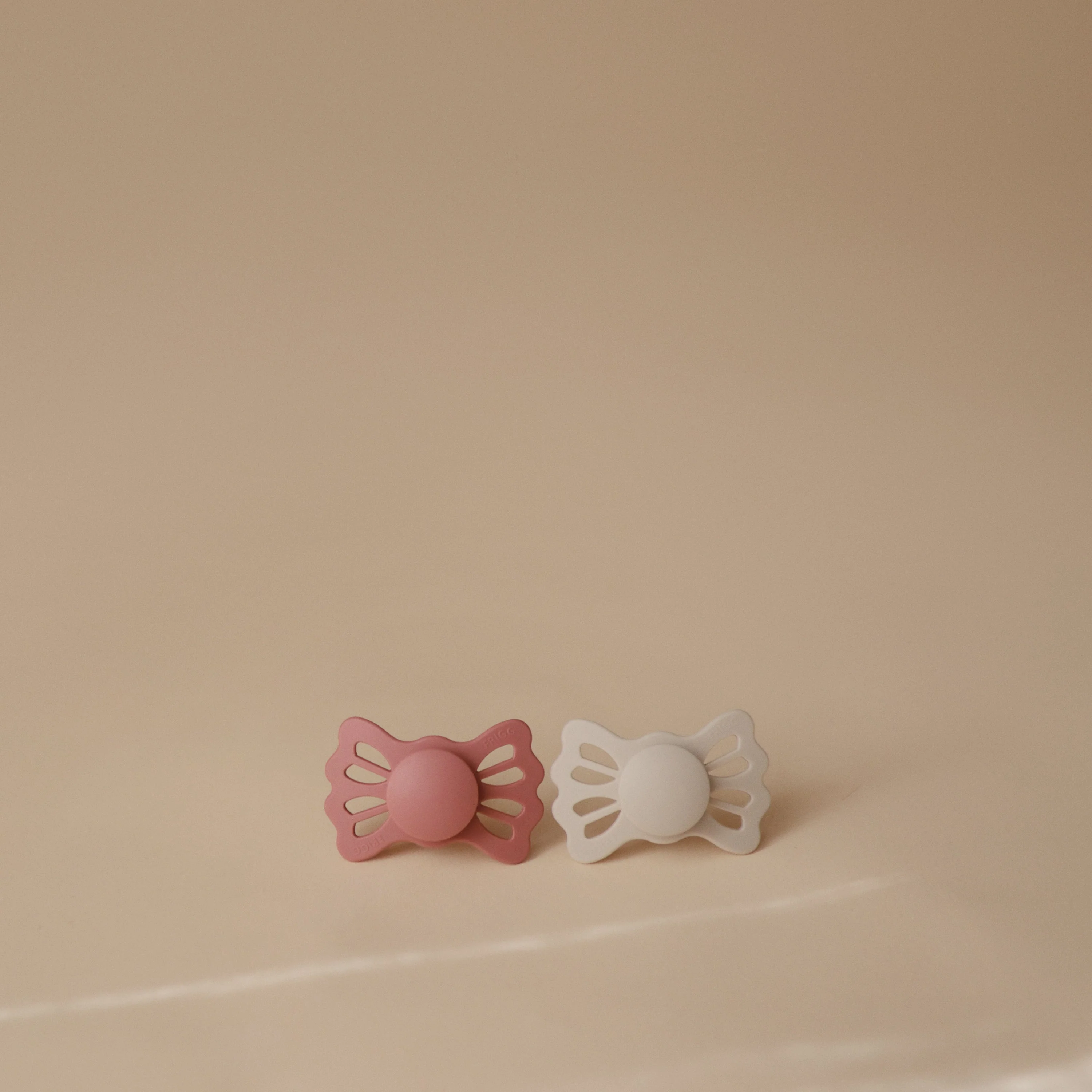 FRIGG Lucky is symmetrical with a slightly flattened teardrop-shaped nipple. The symmetrical design always fits correctly in baby’s mouth, regardless if it is facing up or down. FRIGG Lucky pacifiers have a flatter neck to minimize pressure on the palate and gums, which reduces the risk of crooked teeth and supports proper development of baby’s mouth and jaw.