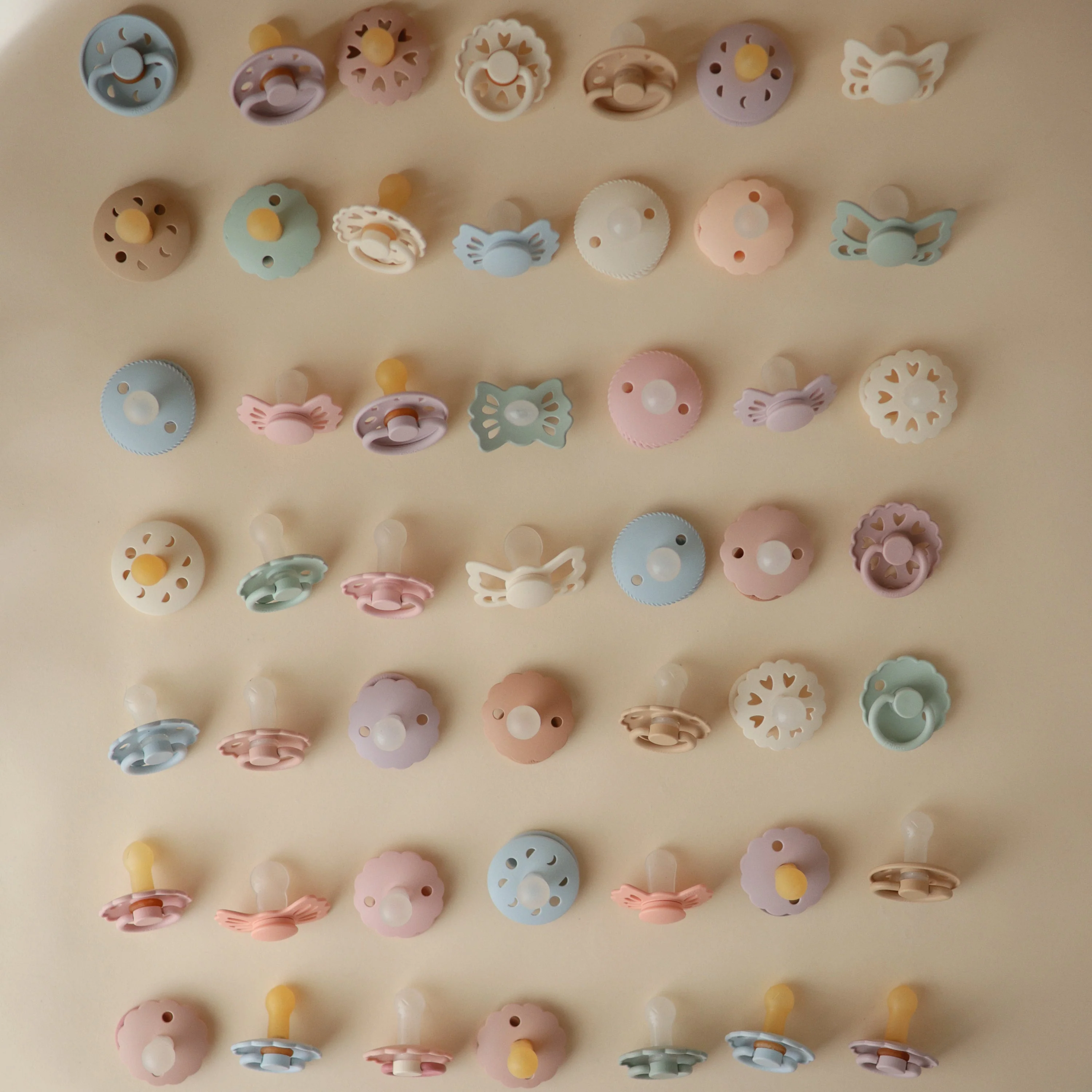 - Pacifiers are made with 100% natural rubber latex and may expand with use.