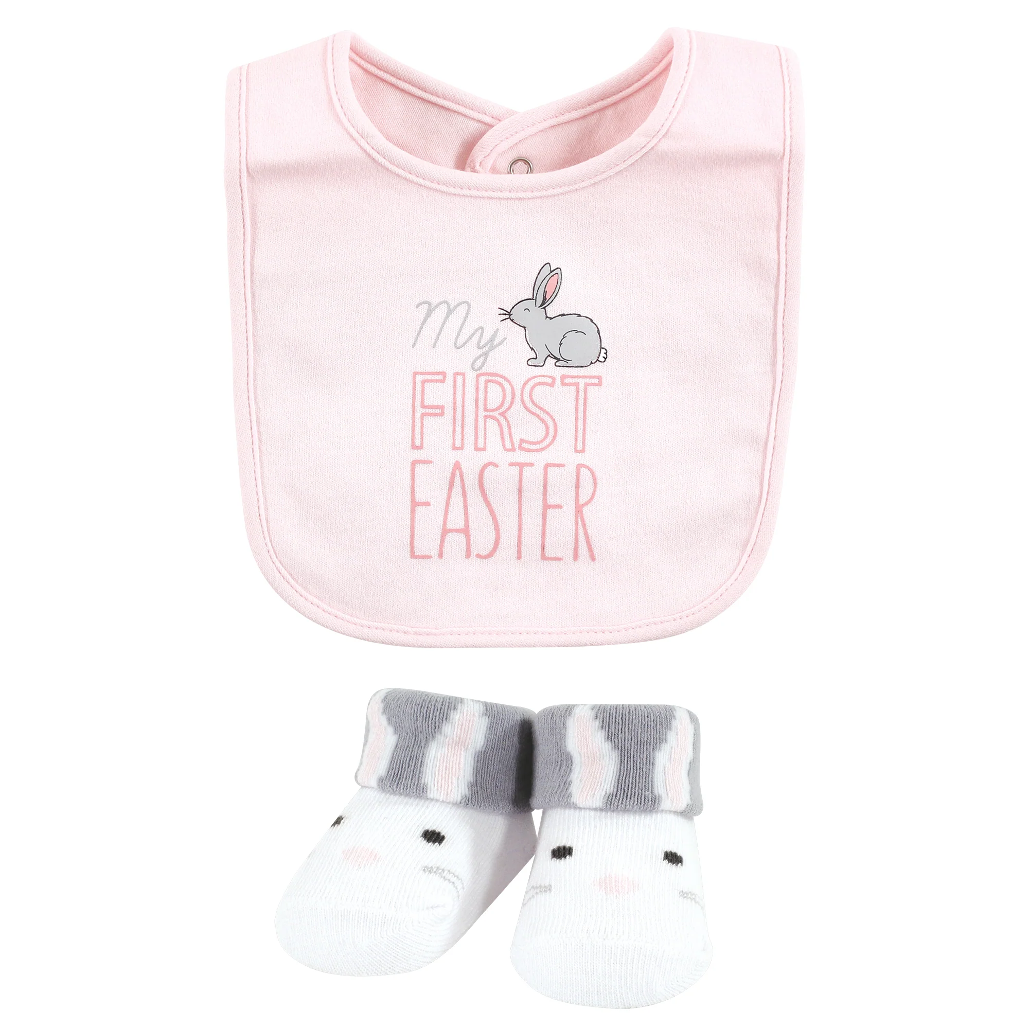 Hudson Baby bib and socks set are an adorable accessory set for fashionable matching bibs and headbands and a great baby shower gift. Each set features matching bibs and headbands with coordinating fun, stylish prints.
