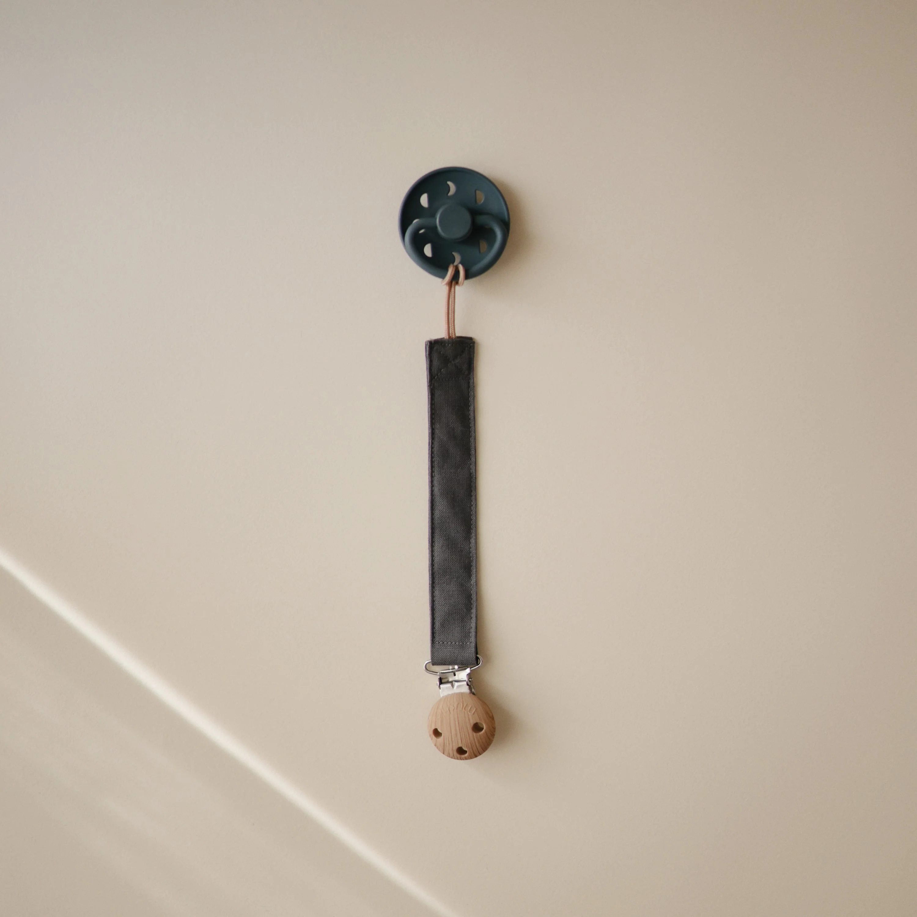 Keep soothing favorites near little hands with our two-pack linen pacifier clip. With an interior water resistant coating, this material can easily withstand daily use and messy moments. Its fabric is soft to the touch while the faux wood silicone clasp holds secure to keep pacifiers in reach and off the floor. The loop design is compatible with most pacifiers as the clip offers durability and long-lasting features to families on-the-go.