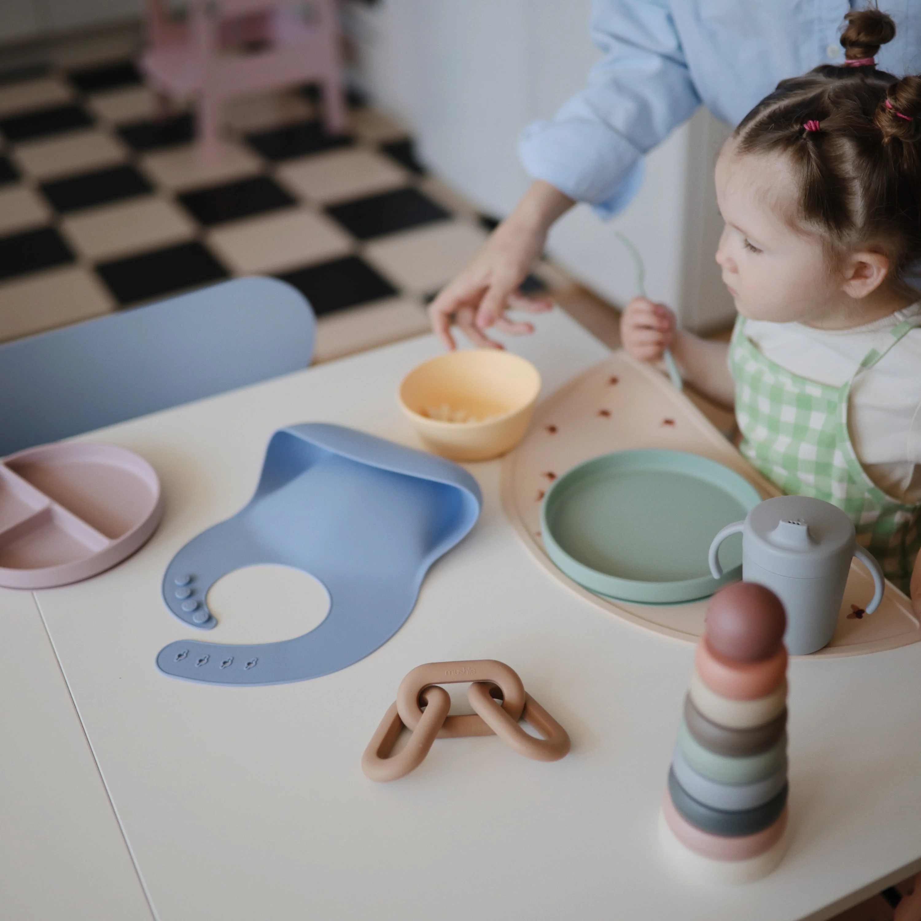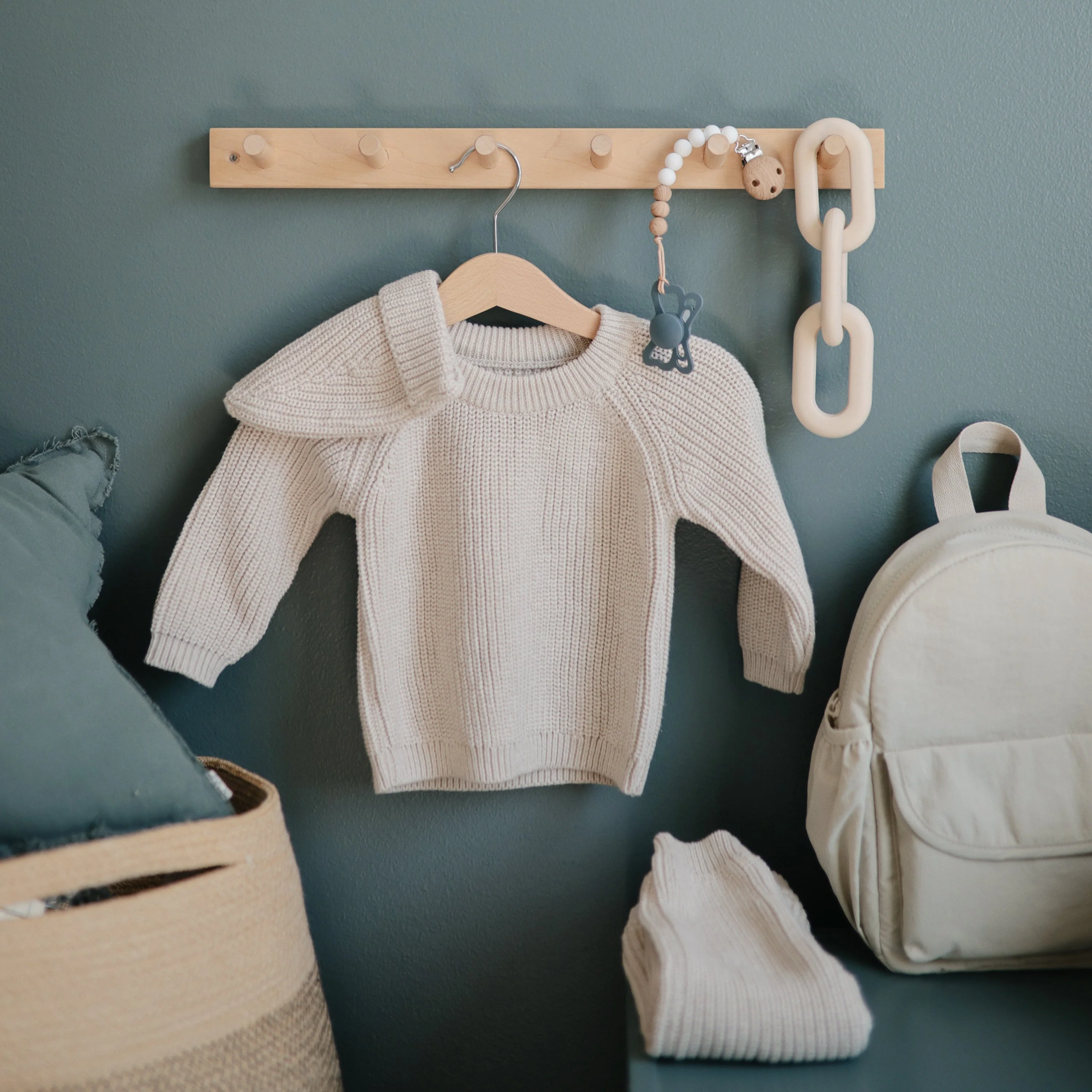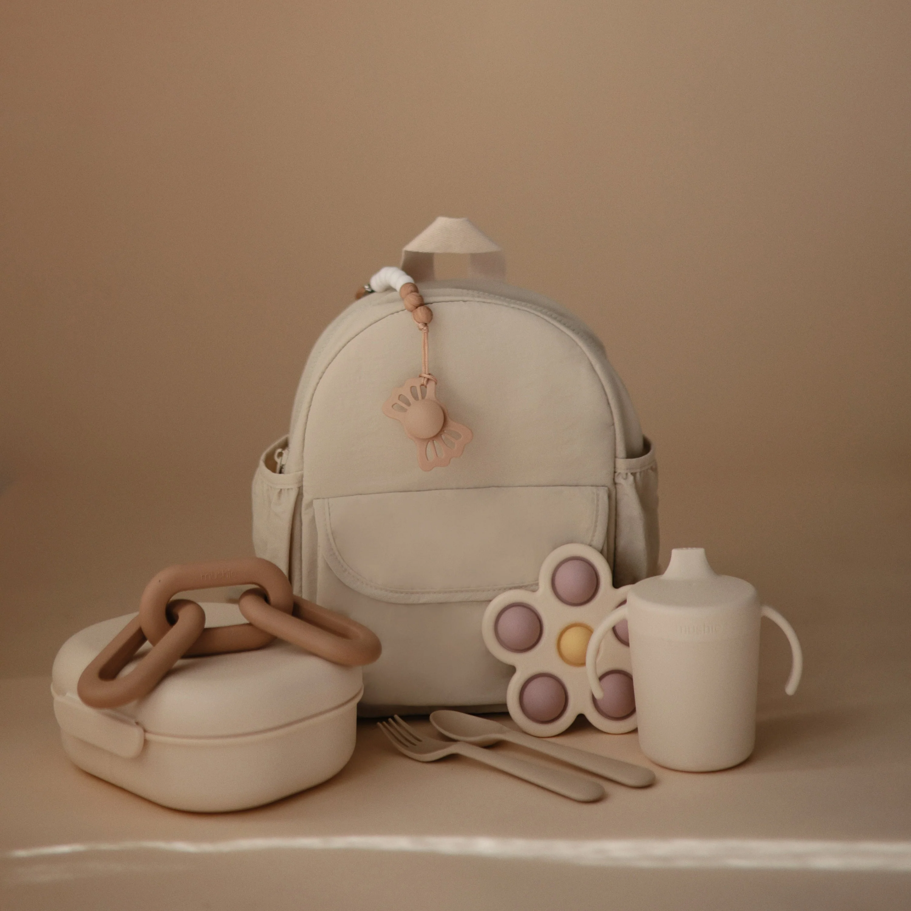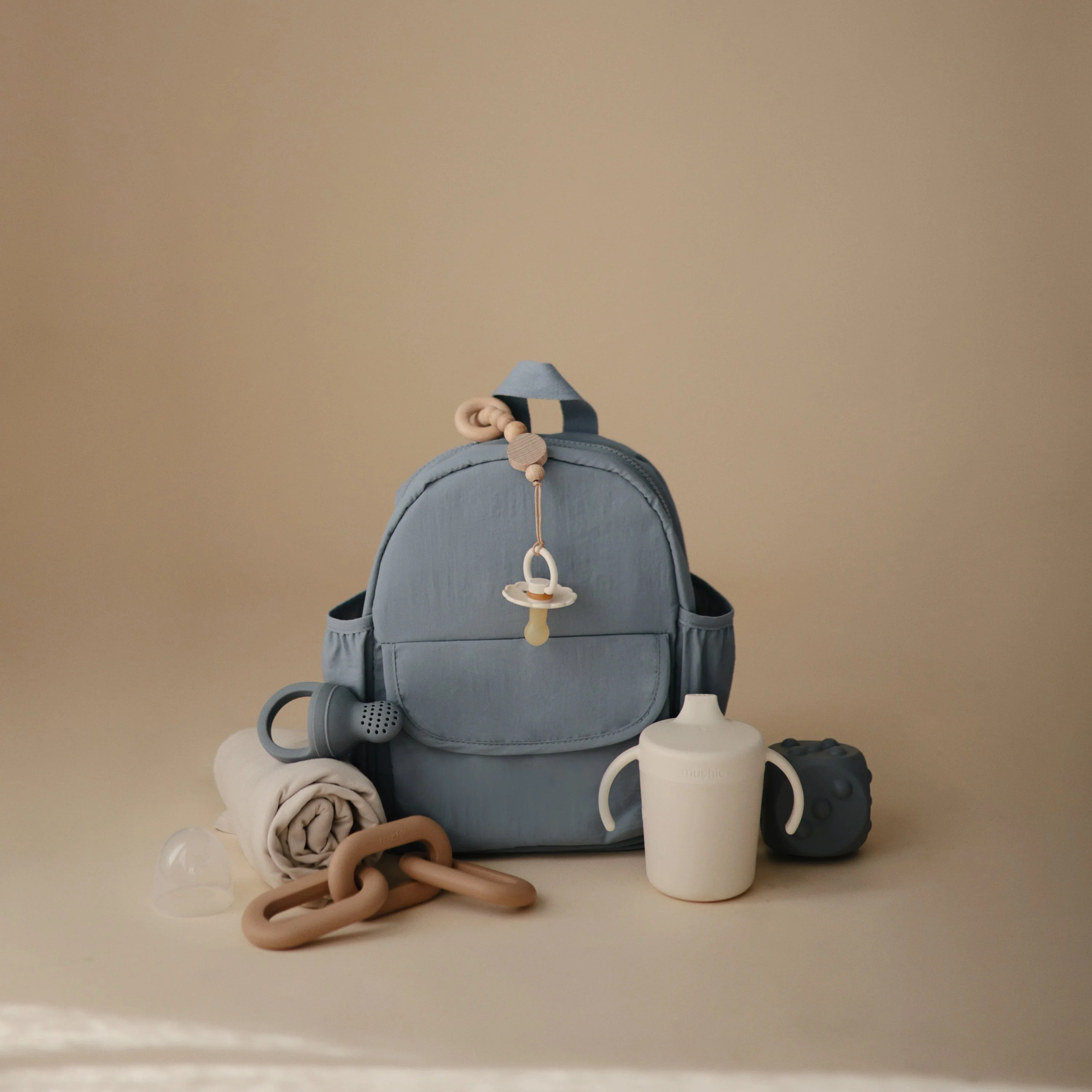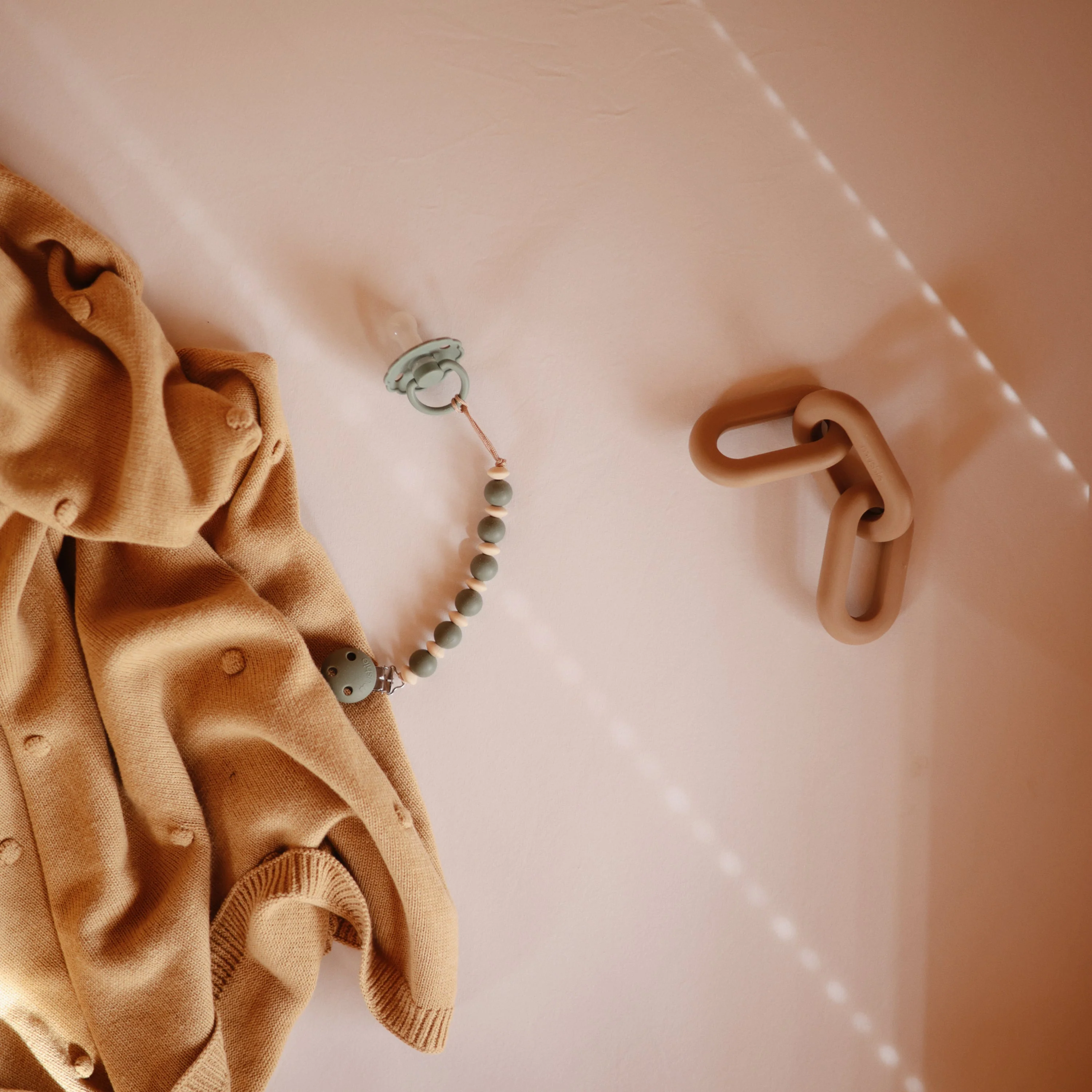 Offer comfort and relief with a teether designed to soothe sore gums throughout the entire teething journey. Made from 100% food-grade silicone, our teether is easily held by tiny hands. With three connecting links that mirror modern design aesthetics, parents can maintain their personal style while littles enjoy a practical and playful toy.