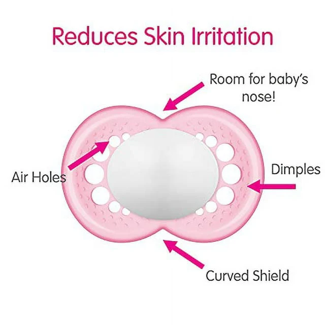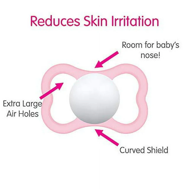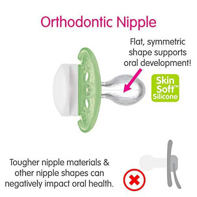 - SYMMETRICAL NIPPLE - No - right side up - means that these fun pacifiers for babies are fuss-free and the binky won't need to be constantly adjusted to sit properly in baby's mouth