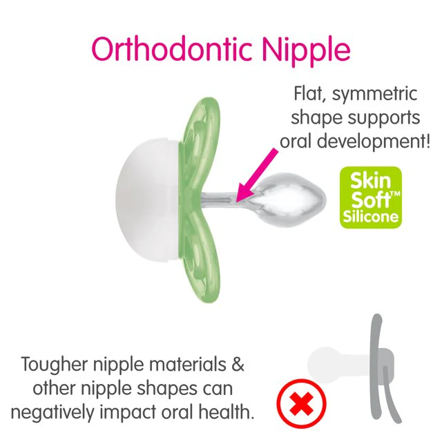 - PERFECT NIPPLE – The nipple on these pacifiers for babies is 60% thinner and 4x more flexible than average, exerting less pressure on the mouth in order to avoid jaw deformations.