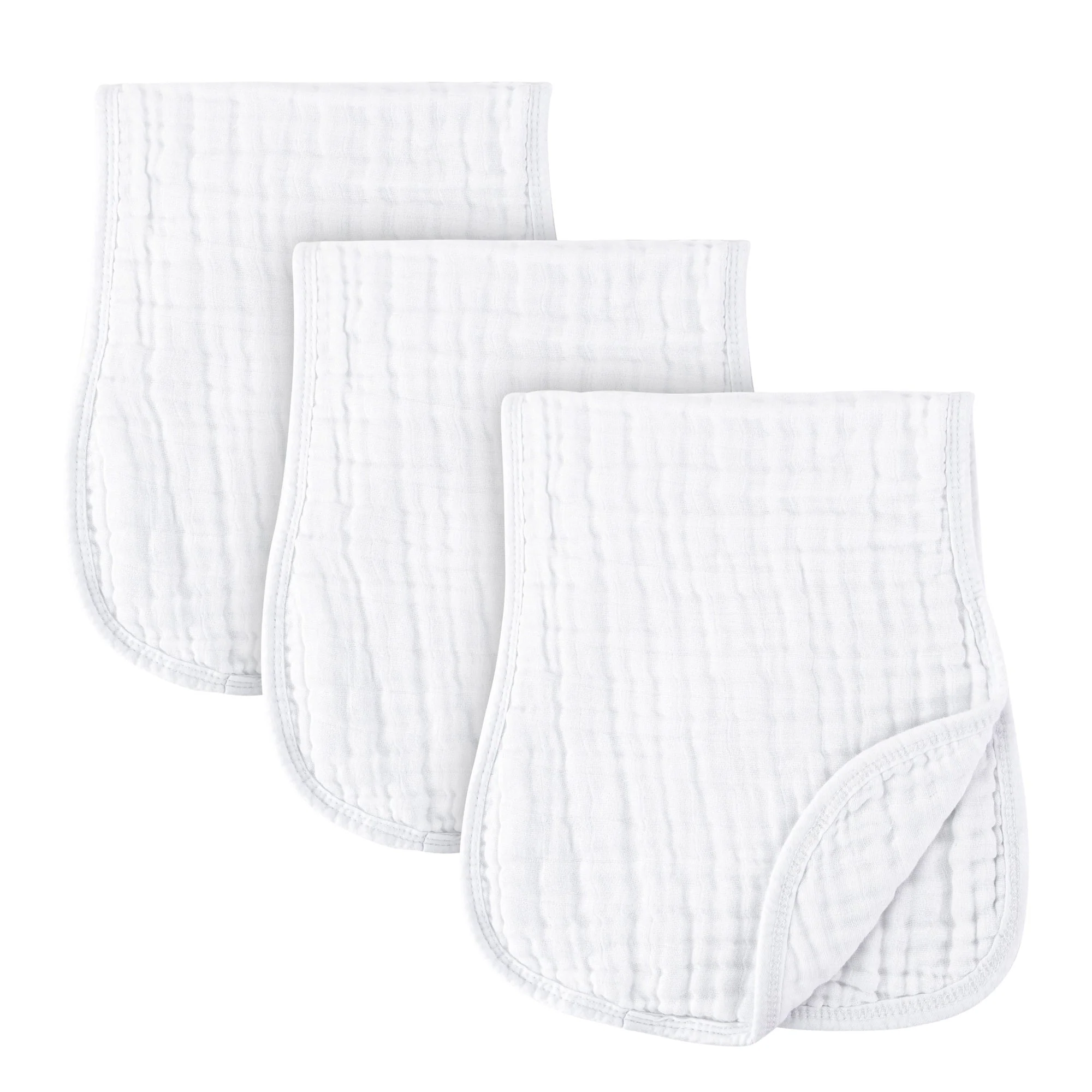 - Our essential 3-pack features 3 Solid white classic burp cloths. Offering a double-sided clean white design that can match or blend with all baby nurseries and apparel, you cannot go wrong with this giftable bundle for the baby in your life.