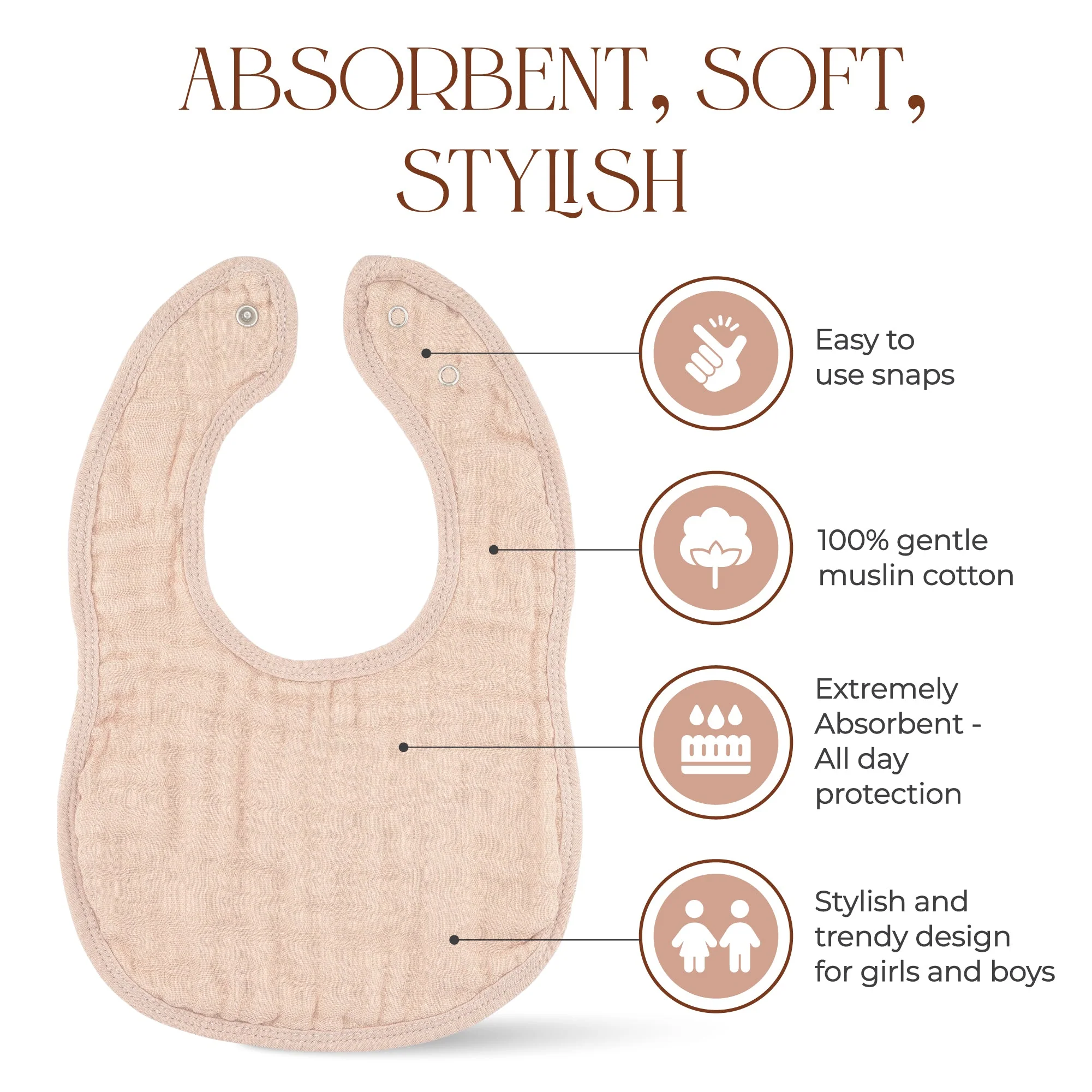 Easy to Use Snaps: These bibs feature easy-to-use snaps, making it a breeze to get them on and off your little one quickly and easily.