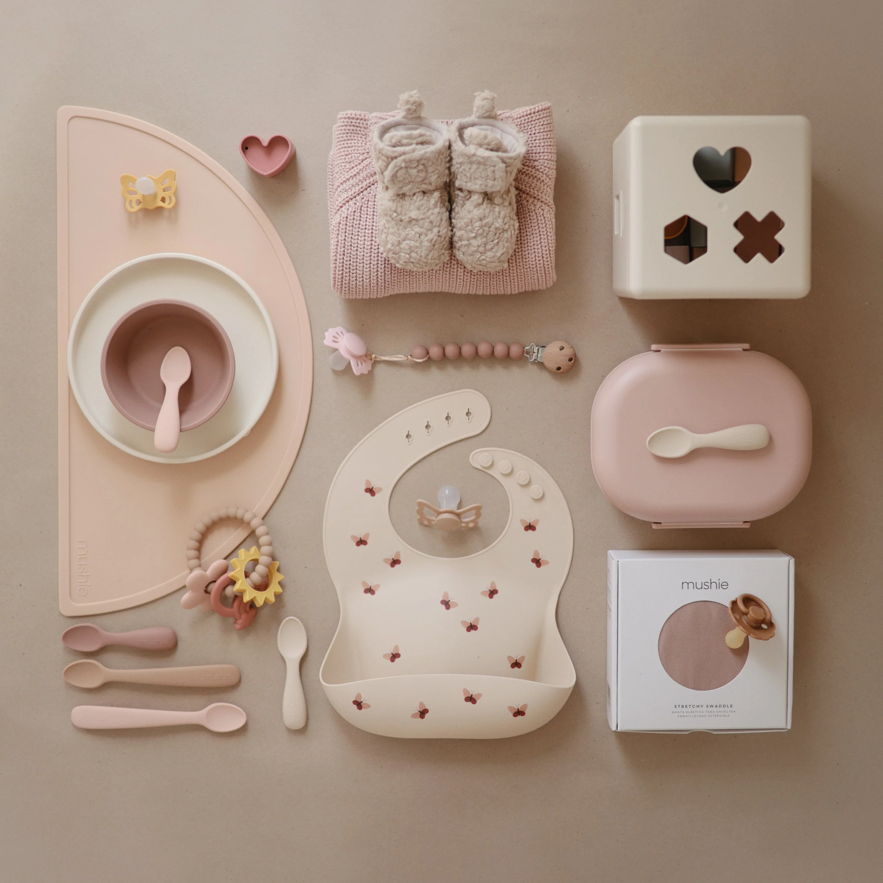 Watch baby's natural curiosity grow and bloom as they explore the cheerful shapes and sensory-rich textures of our nature teething ring. The raised leaf surface of the ring gently soothes sore gums for teething littles while three earthy charms engage the senses. Made from 100% food grade silicone, this teether will send littles on a sensory adventure with its playful sun, rainbow and daisy shapes.