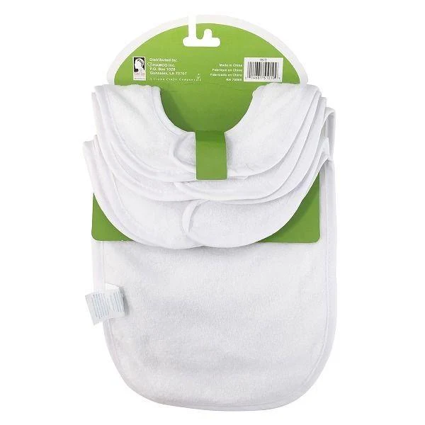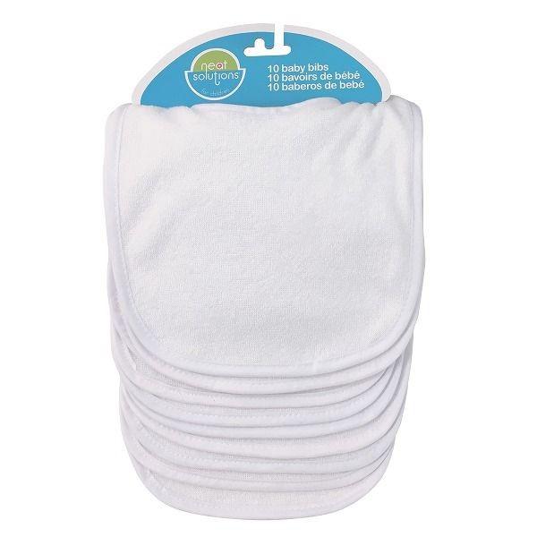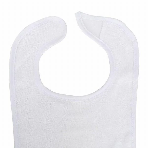 These white bibs are the perfect size for maximum convenience. Absorbent bibs are made of 75% cotton and 25% polyester, and an easy hook and loop fastener at the back makes them simple to put on and take off.