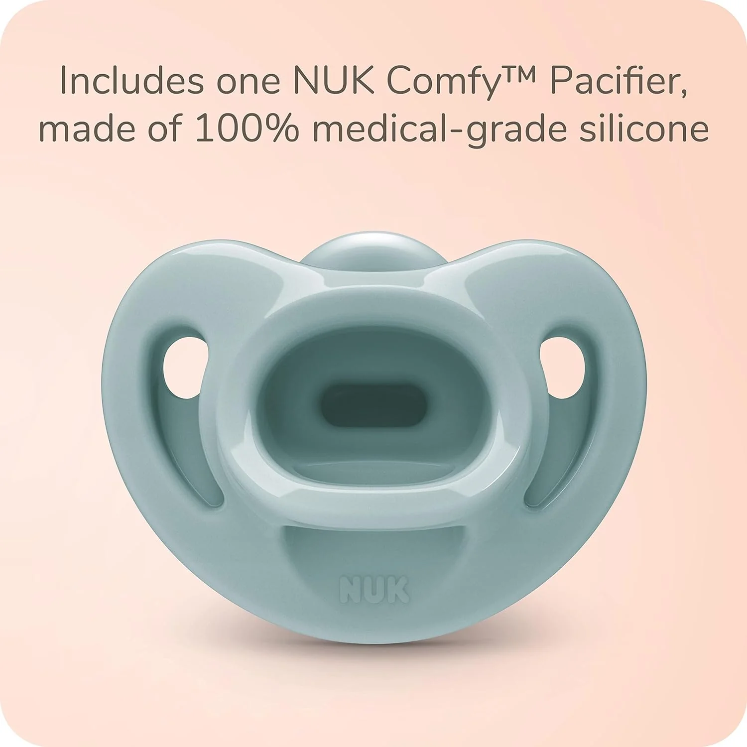- Includes one NUK Comfy Pacifier, made of 100% medical-grade silicone for soft comfort and a heart-shaped design for a perfect fit