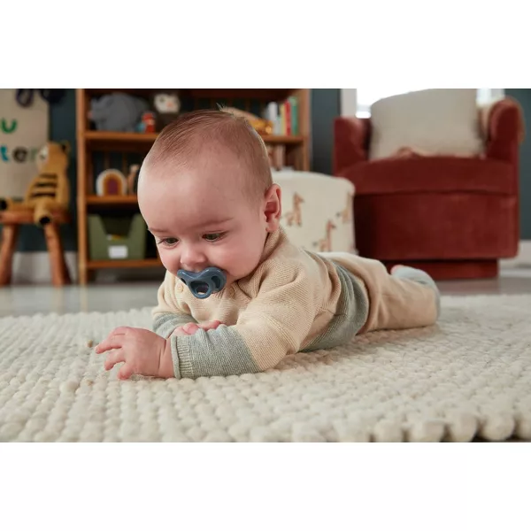 Big changes start with small steps. That’s why we created the NUK for Nature™ collection, to little by little make a big impact. With 70 years of experience, we are proud to do our part to design a better future for our little ones and their planet. Our NUK for Nature™ Comfy Pacifier is made with 100% bio-based sustainable silicone* so parents can feel good about doing their part. We use renewable resources like sugar beets and other plant components to create our sustainable pacifiers, which are REDcert²-certified, so your little one can enjoy something that's both comforting and wholesome. NUK for Nature™ Comfy Pacifiers are made with 100% silicone for soft comfort and feature a heart-shaped design for a perfect fit. This baby pacifier is BPA-free and dishwasher-safe (top rack only). (*Made with natural raw materials certified according to REDcert² mass-balance requirements)