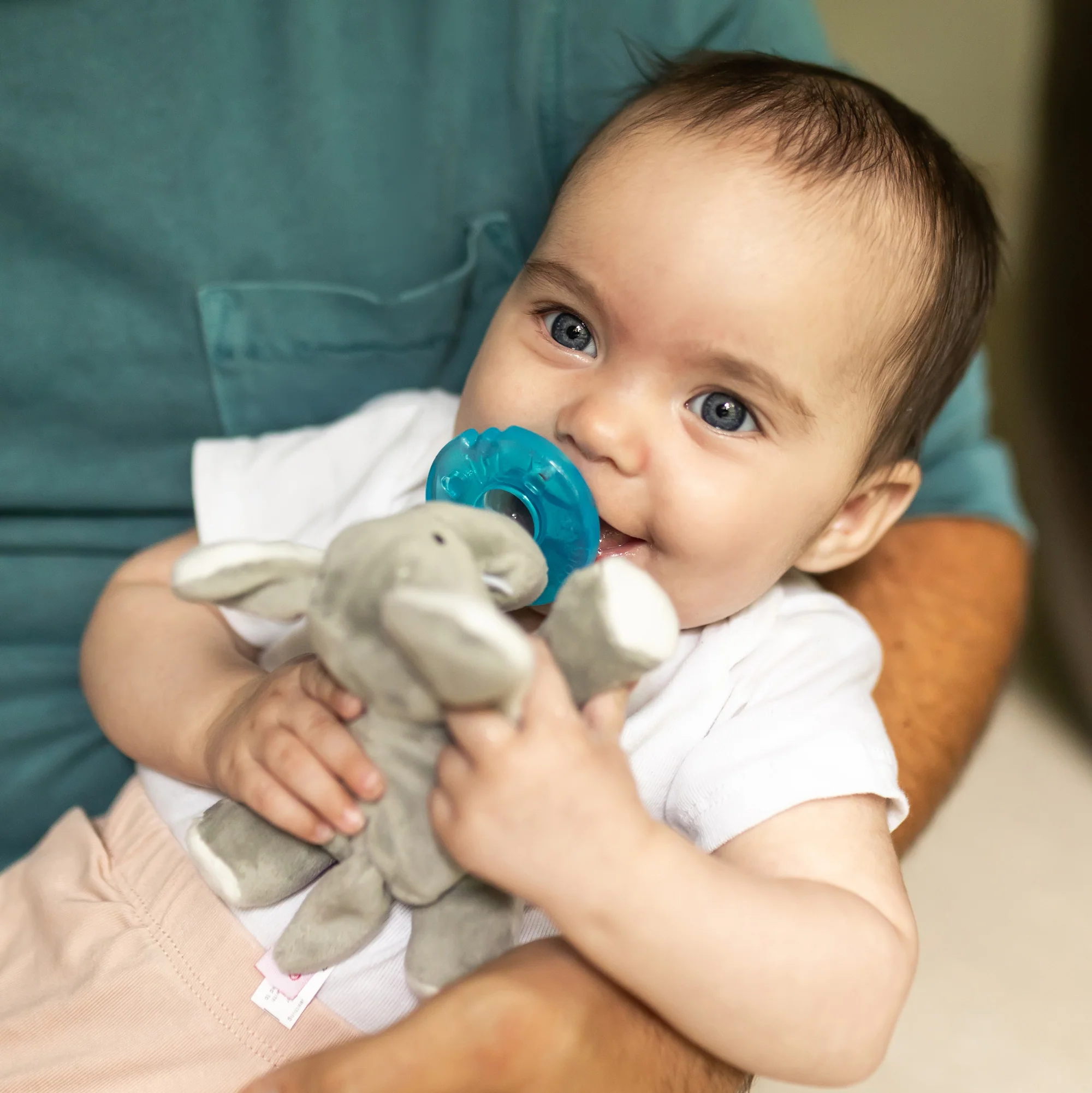 Carefully calculated weight and size of the plush animal keeps the WubbaNub pacifier near baby's mouth, whether in the baby sling, carrier and stroller, and even while you hold your baby. Available in a variety of friends. Recommended for babies 0-6 months. Babies who are not teething, regardless of age.