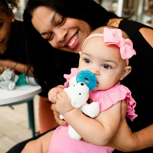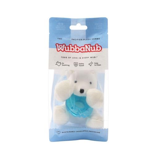 "The unique style of the WubbaNub plush pacifier allows it to remain close and easily positioned to baby. The WubbaNub brand is widely distributed in hospitals and is made with a 100% silicone, latex free pacifier. Available in a variety of friends. Recommended for babies 0-6 months. Babies who are not teething, regardless of age.
