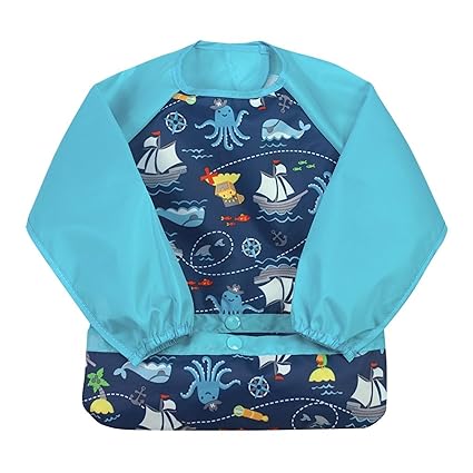 Green Sprouts Snap & Go Easy-wear Long Sleeve Bib 2T-4T Aqua Pirates