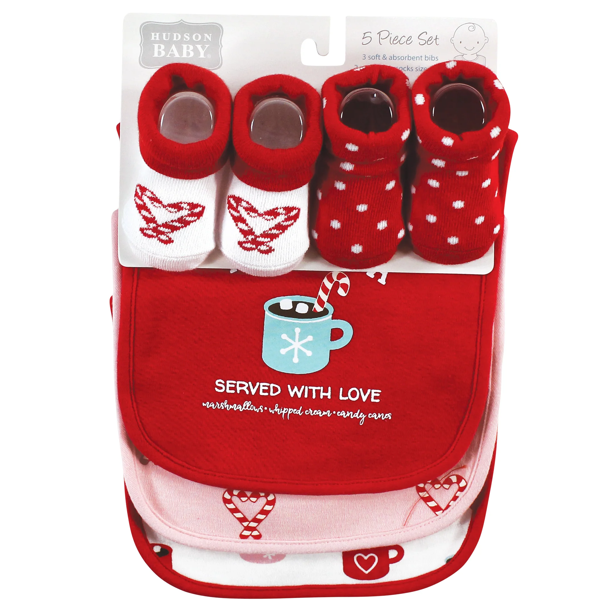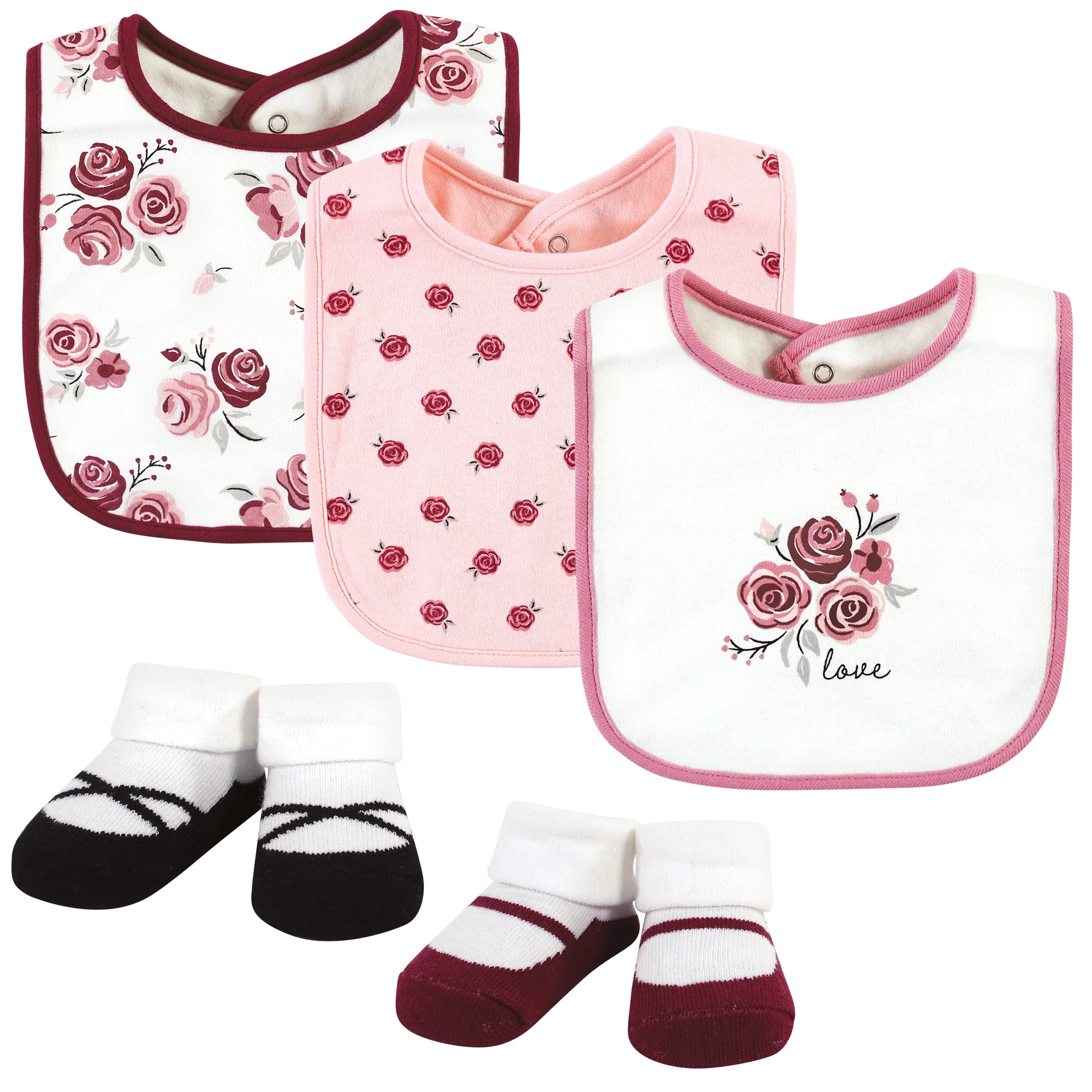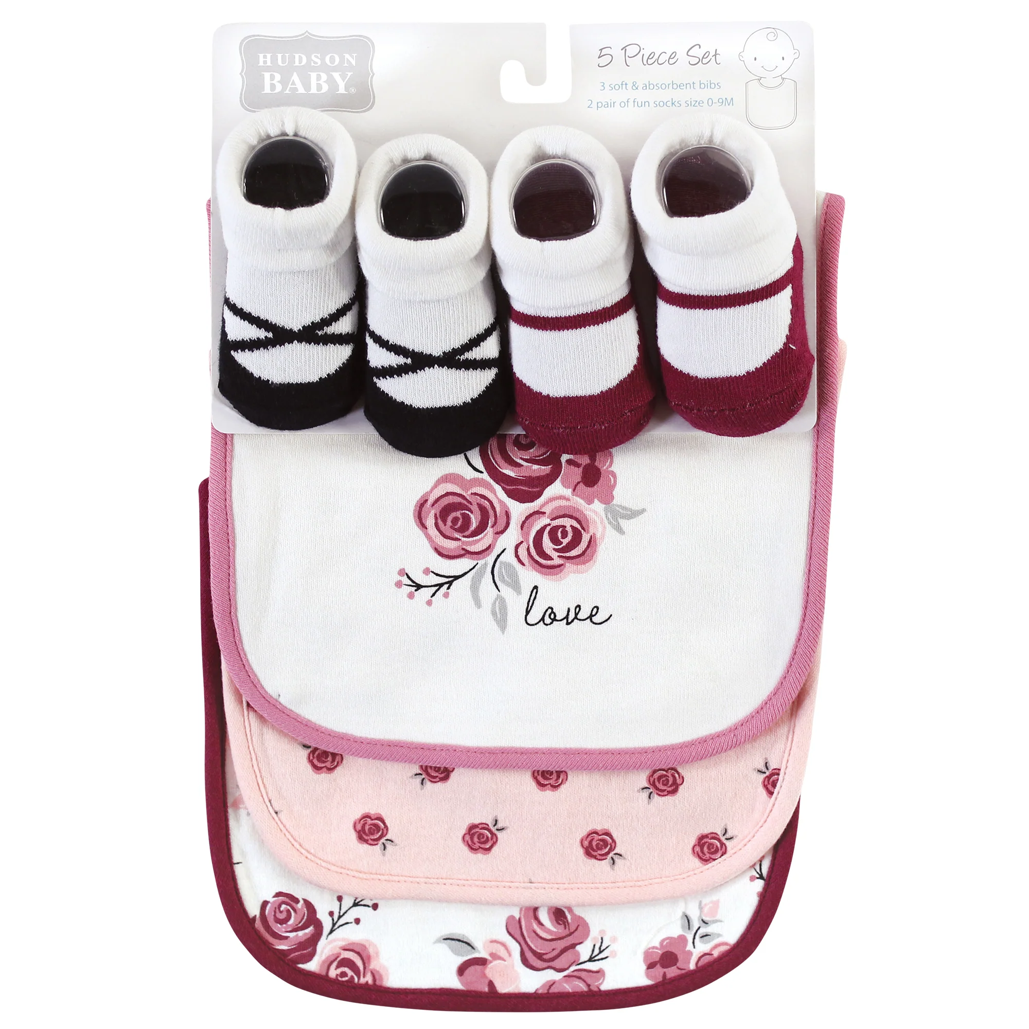 Hudson Baby Infant Girl Cotton Bib and Sock Set, Rose, One Size
