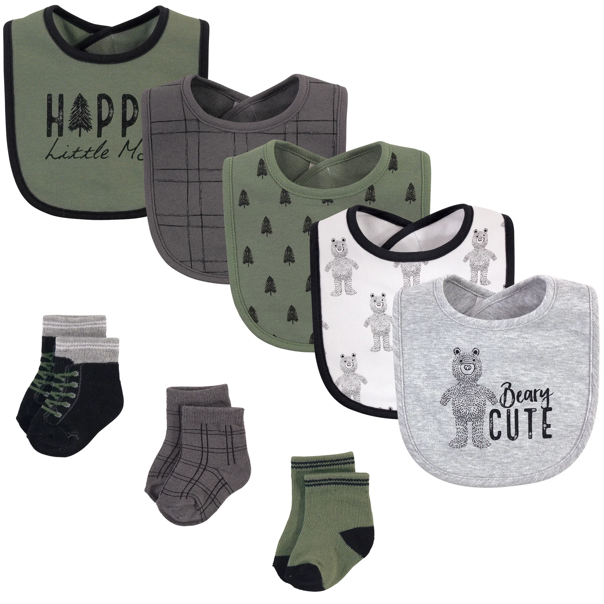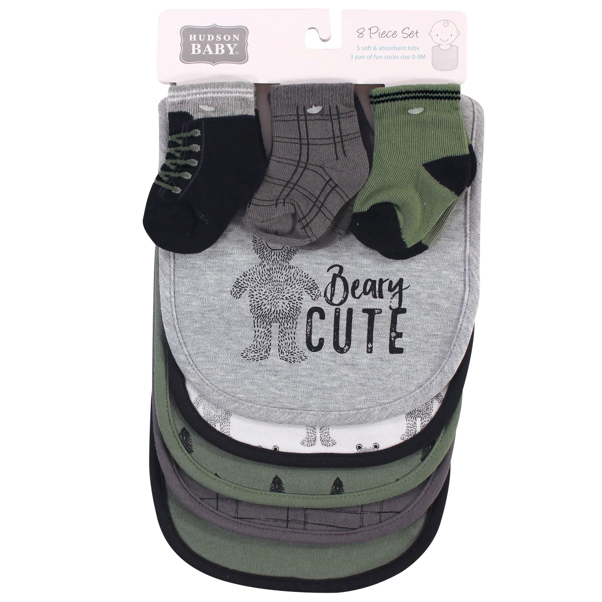Hudson Baby Infant Boy Cotton Bib and Sock Set 8 Pack, Beary Cute, One Size