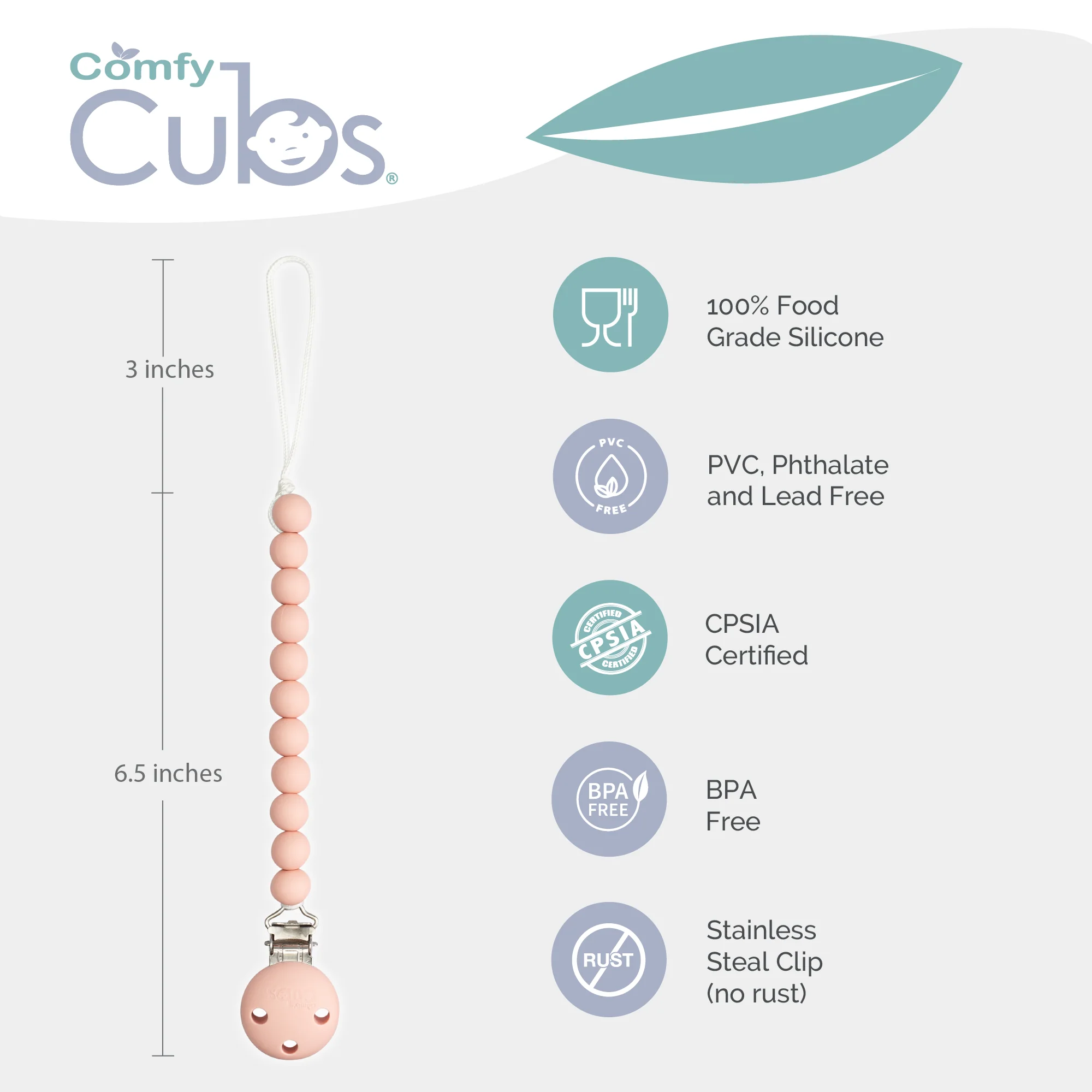 Comfy Cubs Pacifier Clips, 2 Pack - Pink Blush