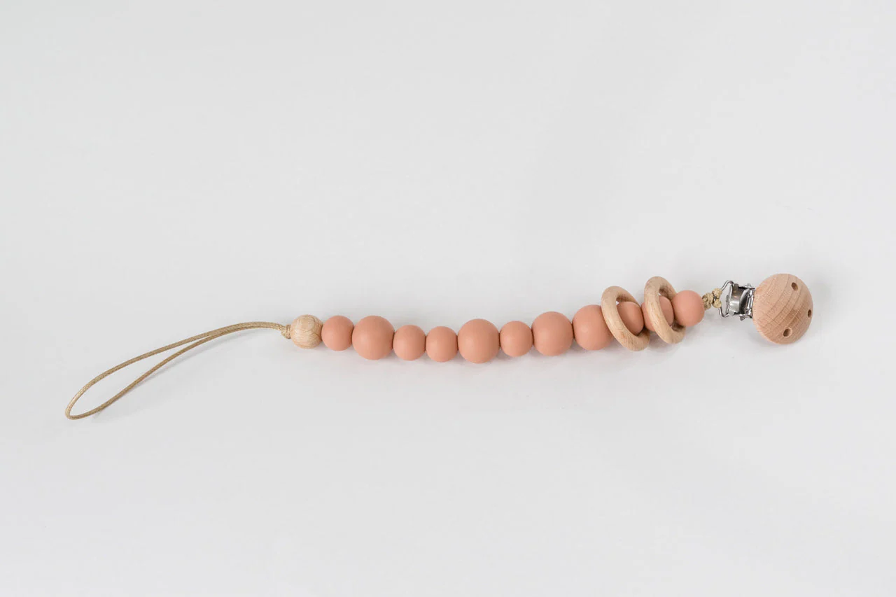Babeehive Goods Clay Silicone Bead & Wood Ring Pacifier Clip
