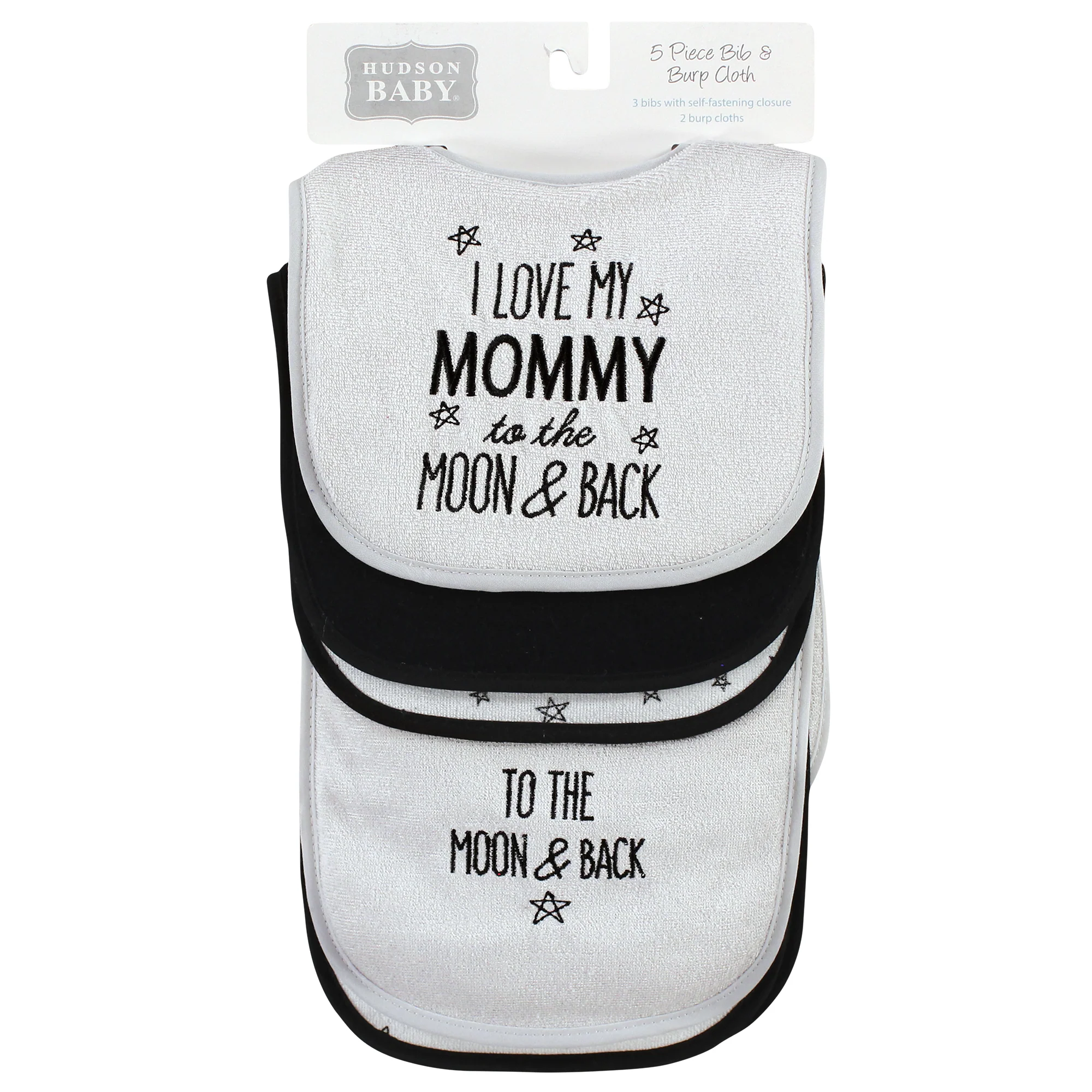 Hudson Baby Baby Cotton Terry Bib and Burp Cloth Set, Mom Dad Moon And Back, One Size
