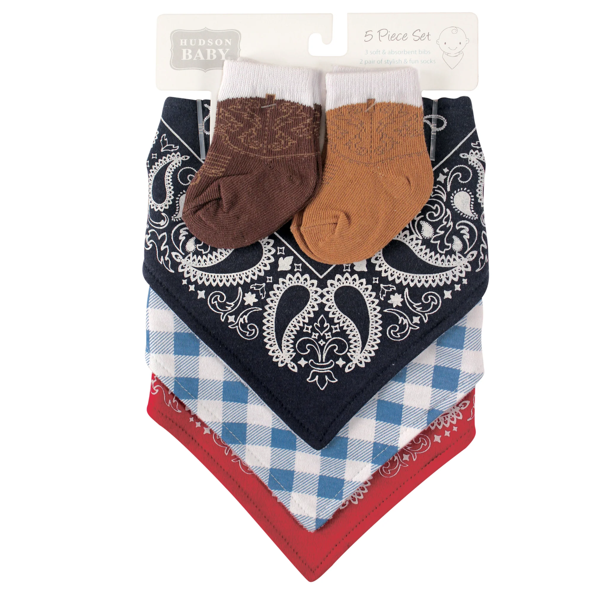 Hudson Baby Infant Boy Cotton Bib and Sock Set, Pizza, One Size