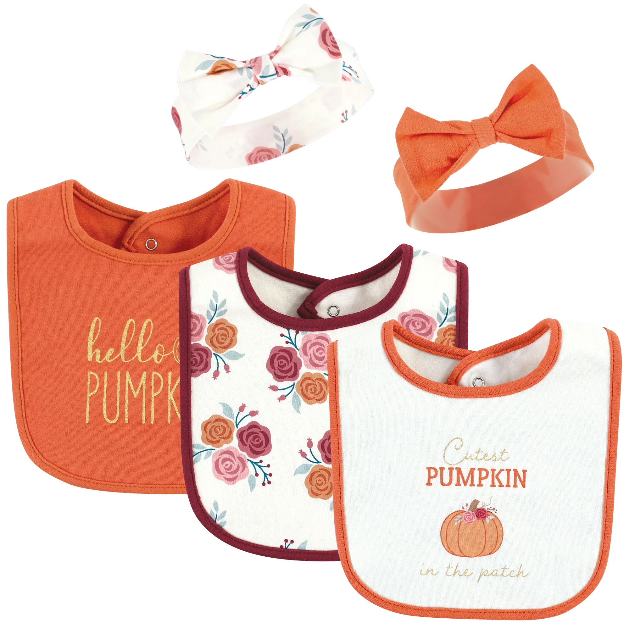 Hudson Baby Infant Girl Cotton Bib and Headband, Cutest Pumpkin, One Size