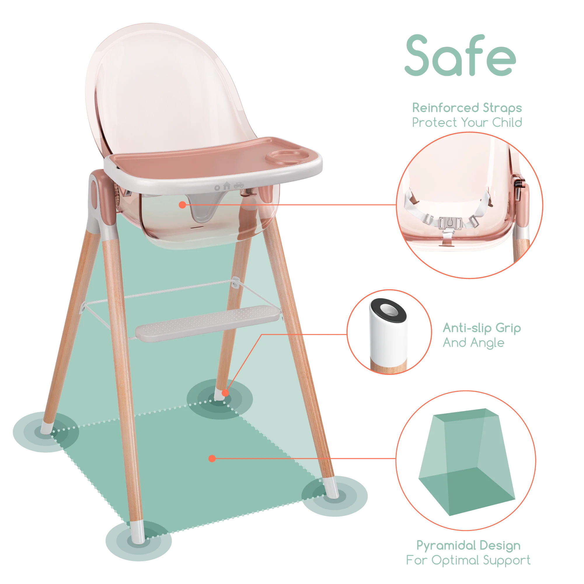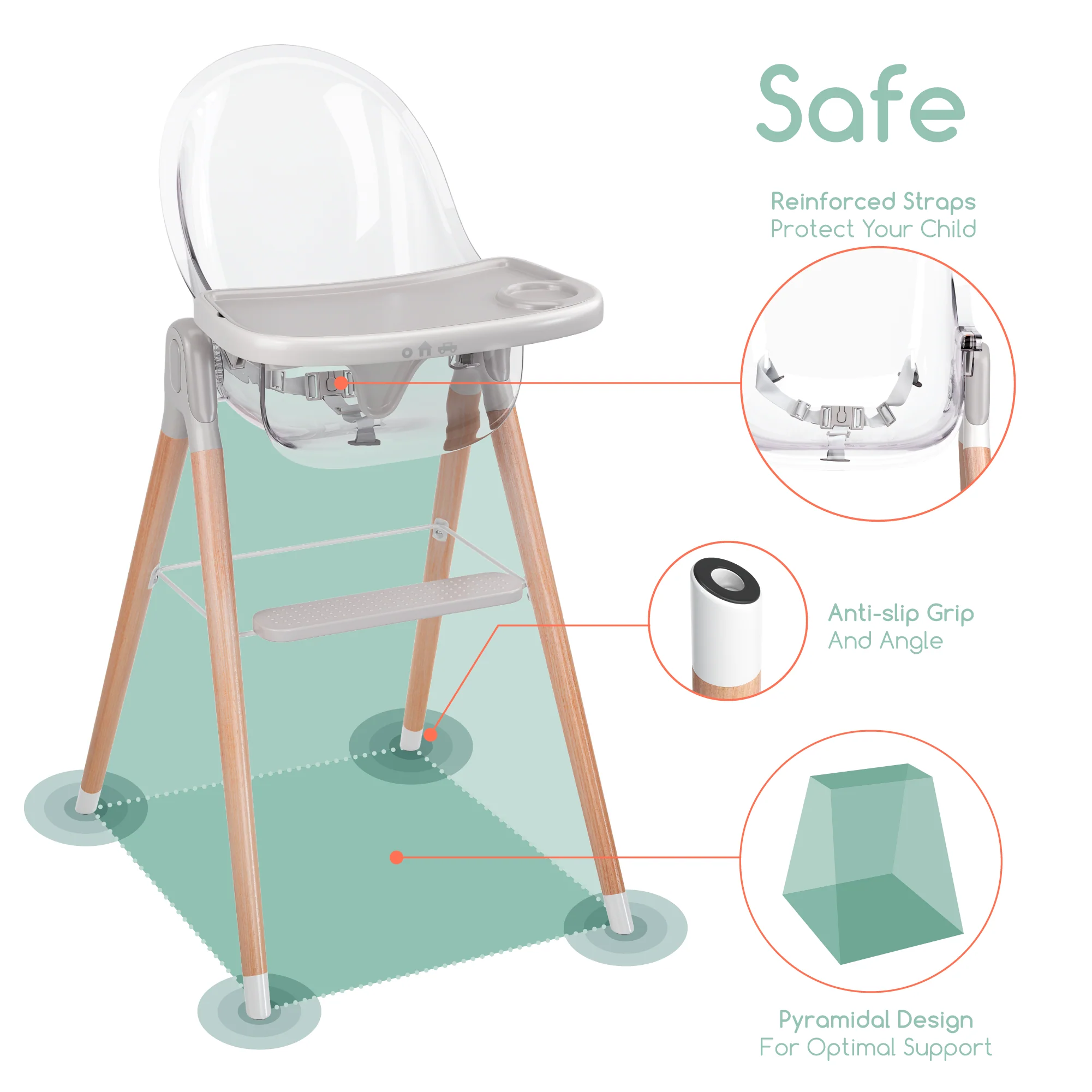 Three positions to adjust to your child’s age and food ability. From bottles to eating solids the chair can accommodate your little one. The chair also transitions to different stages from infant to toddler to young child.