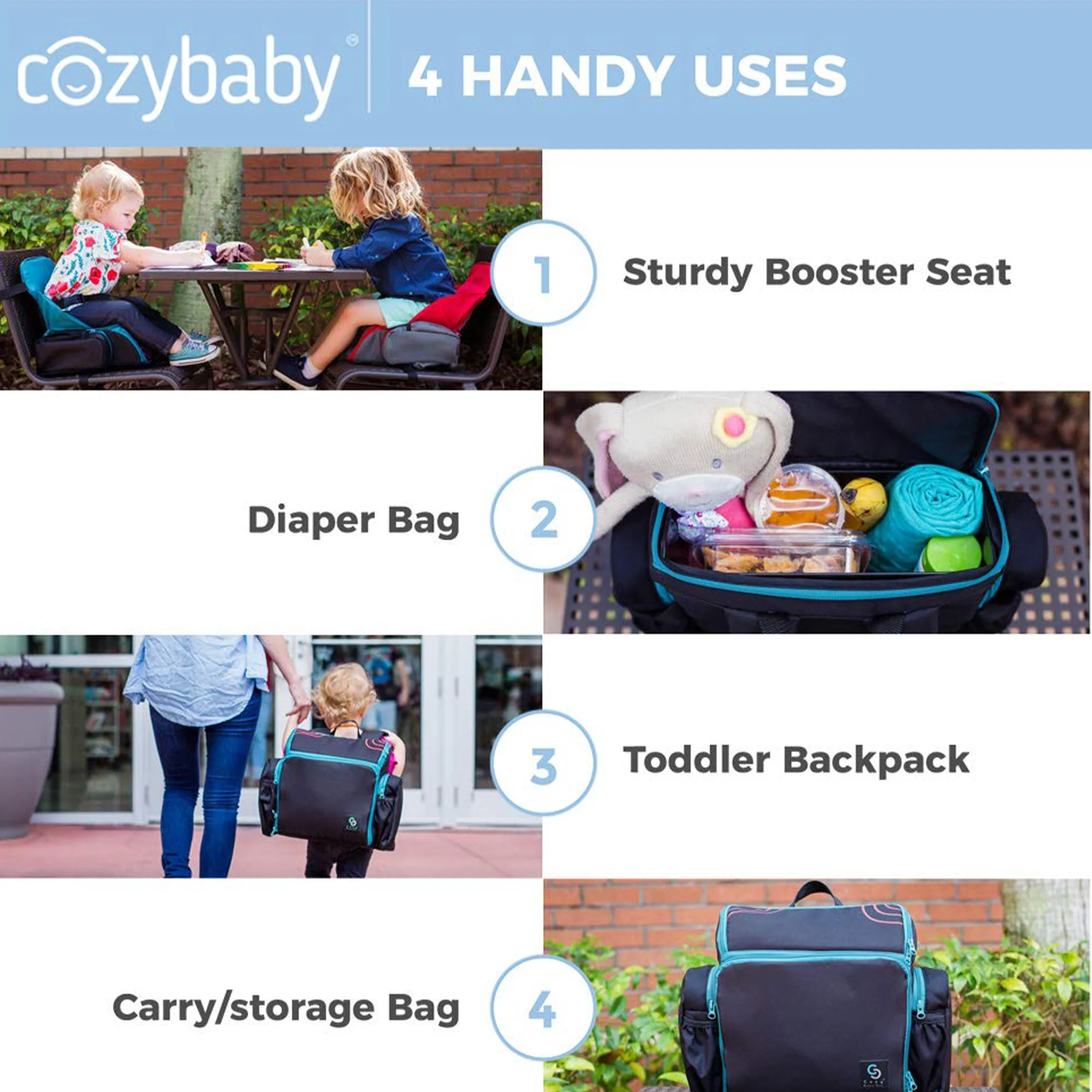 - This isn't just a backpack to store your items, the bag can be turned into a portable travel booster seat for extra security for your baby on high chairs