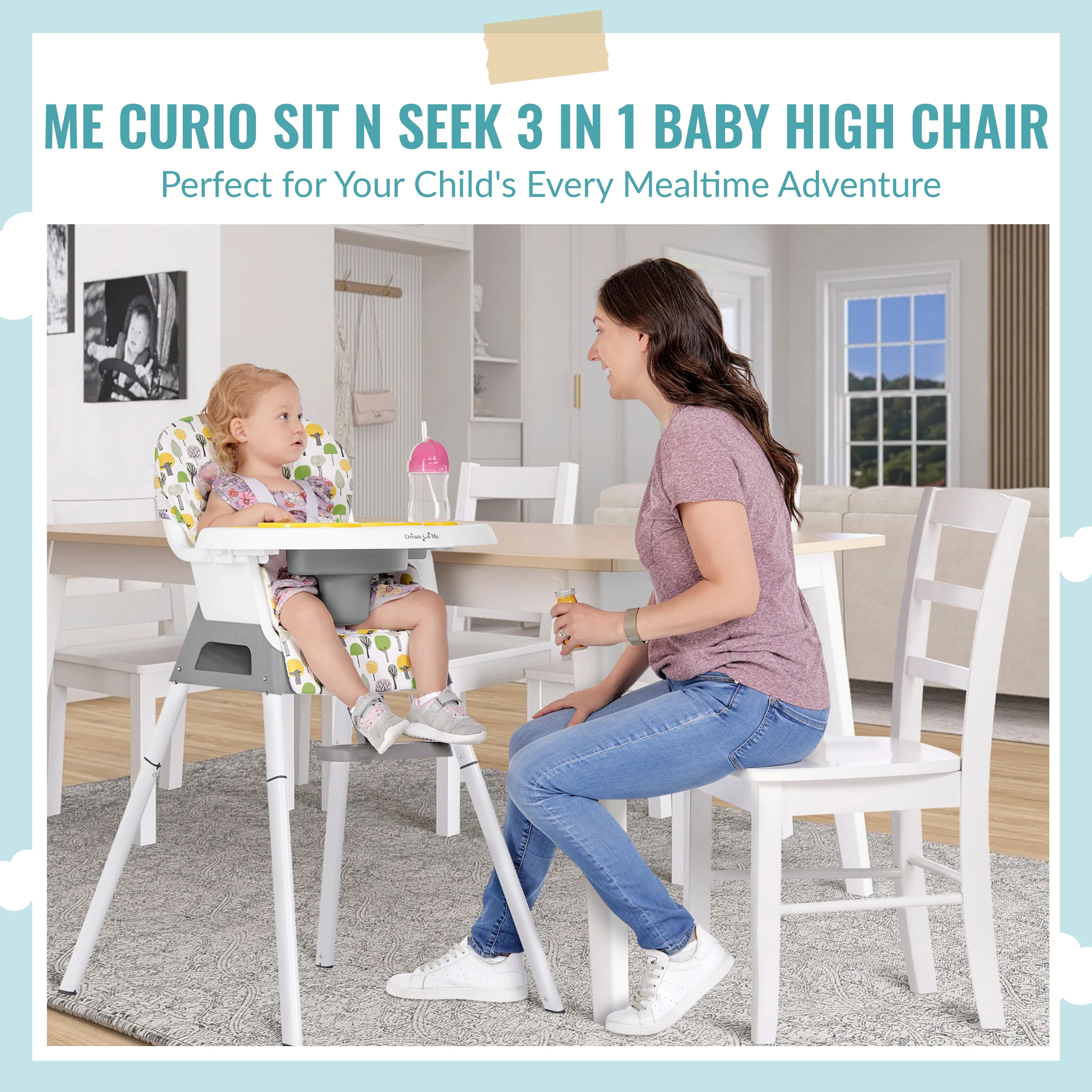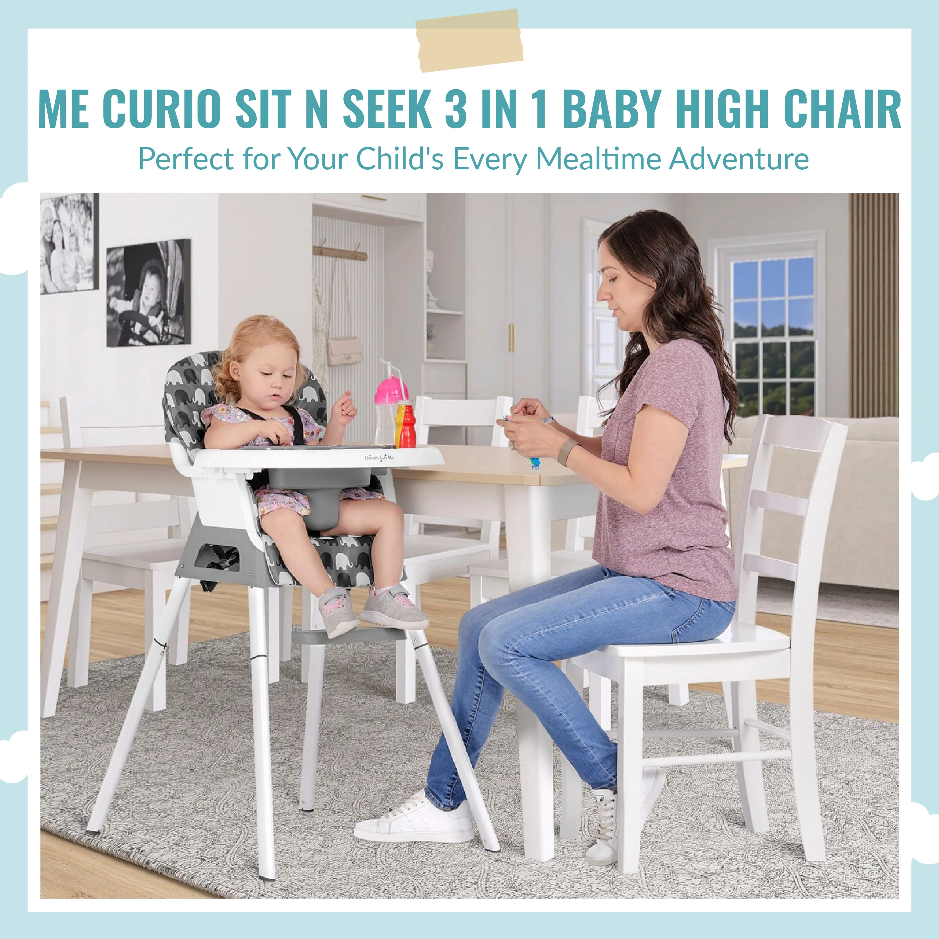 Introducing the Dream On Me Curio Sit N Seek Baby High Chair, the perfect companion for your little one's mealtime adventures! This versatile baby high chair can be converted to a Toddler Chair as well as a Booster Seat