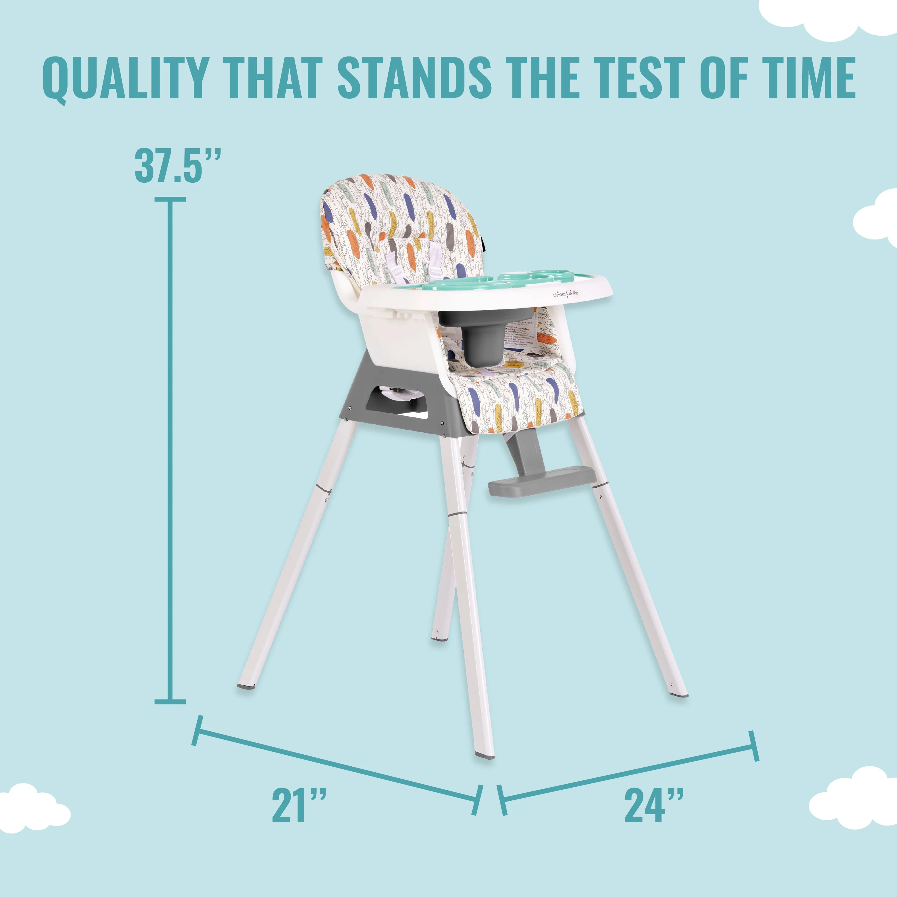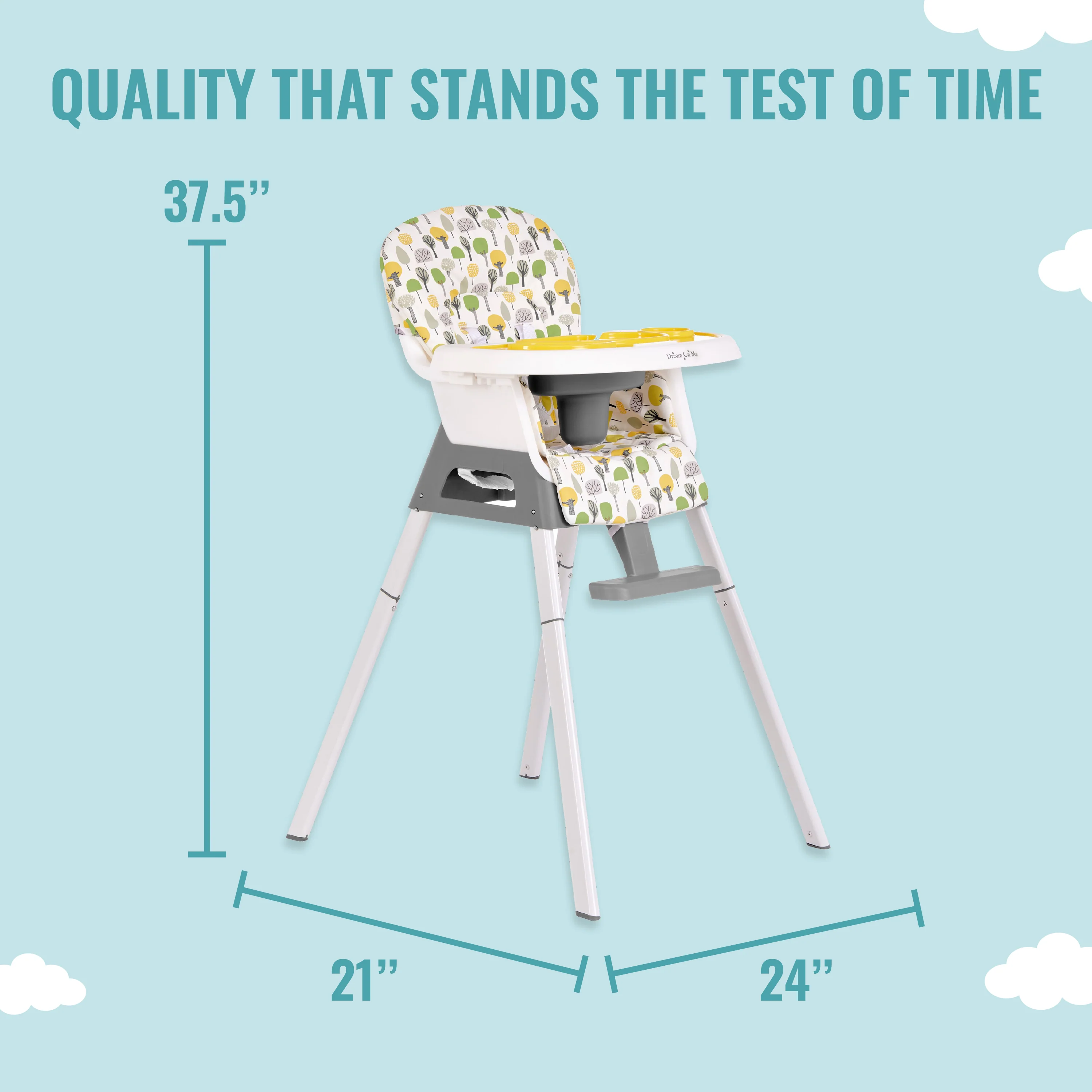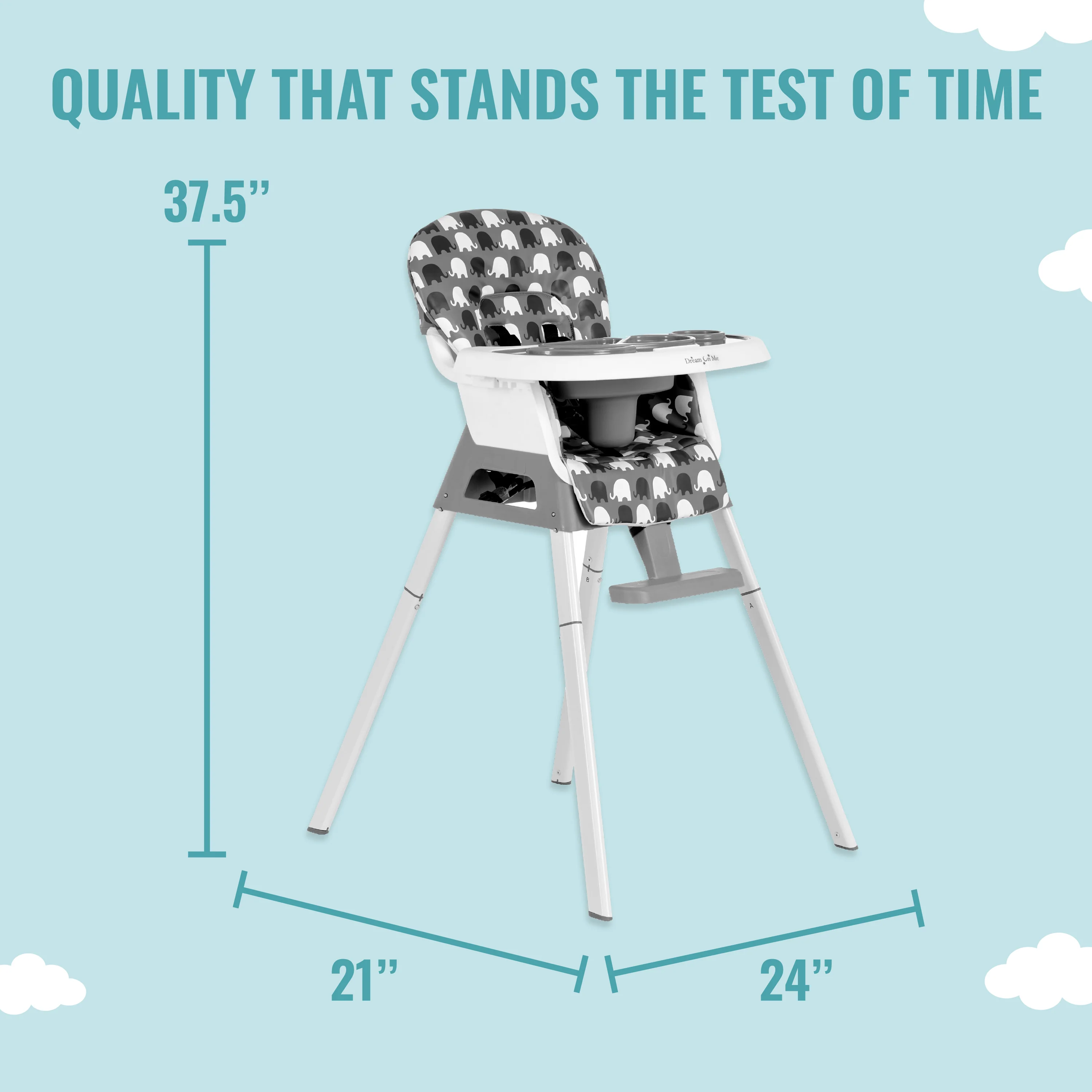 - The Dream On Me Curio Sit N Seek High Chair offers 3 height level adjustments, a 3-position adjustable tray, and an adjustable footrest, ensuring your child is always at the perfect level for feeding.