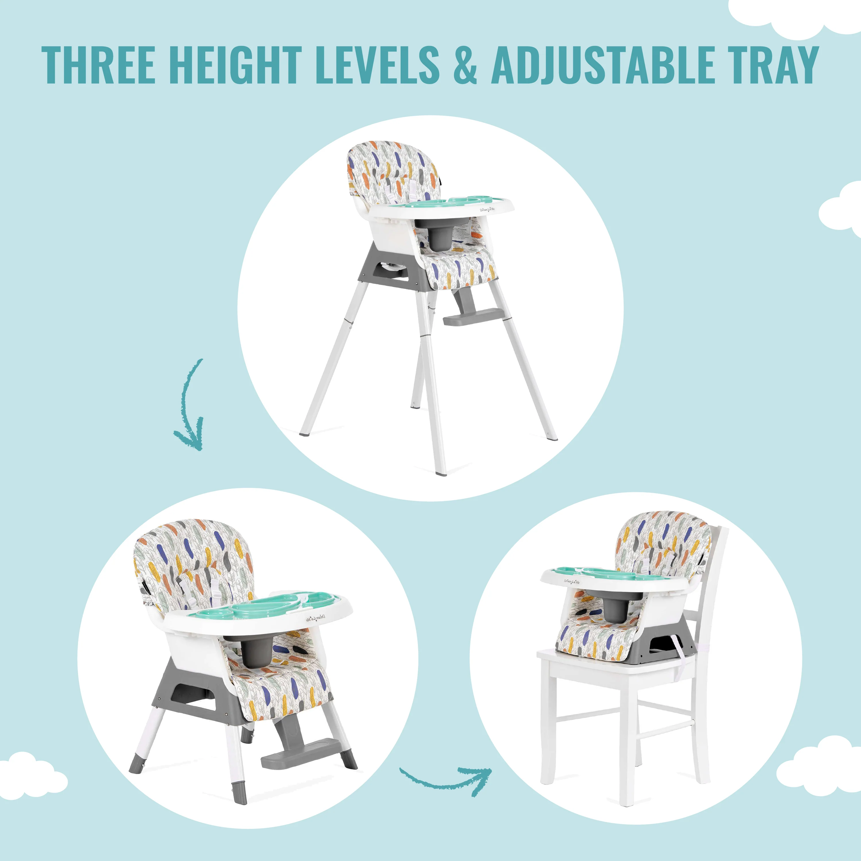 - This versatile baby high chair can be converted to a Toddler Chair as well as a Booster Seat, as your curious one embarks on a sensory journey, exploring different flavors and discovering new foods.
