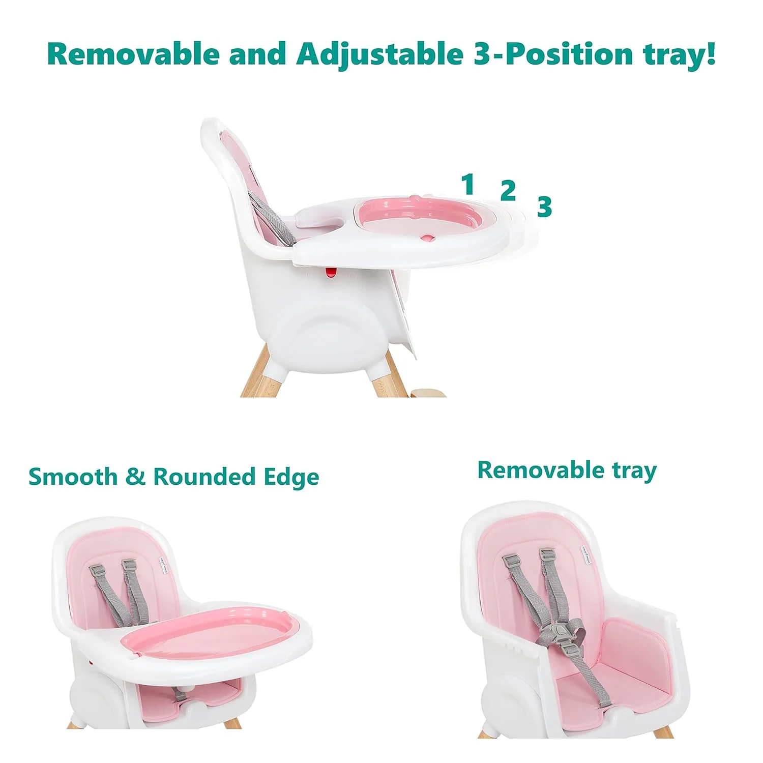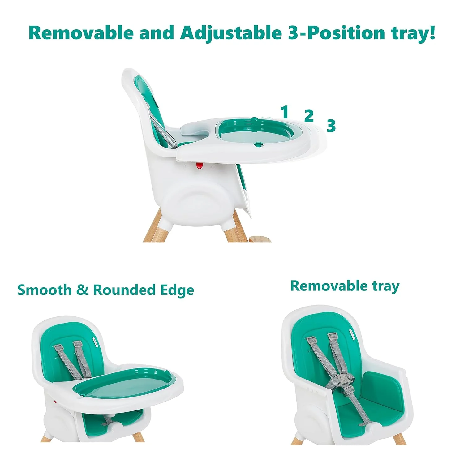 - FOR HAPPY, COMFY MEALS: This highchair boasts of a dishwasher-safe, removable tray that can be adjusted to 3 different positions for your child as they grow. It can also be stored at the back of the chair.