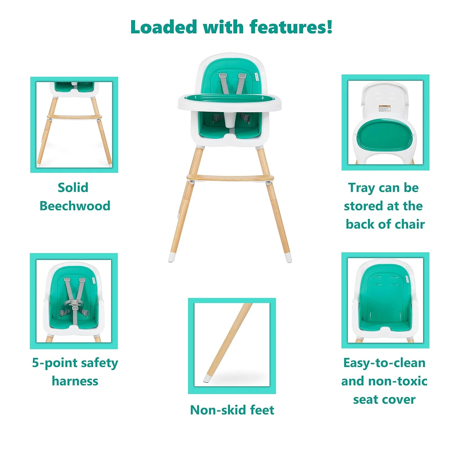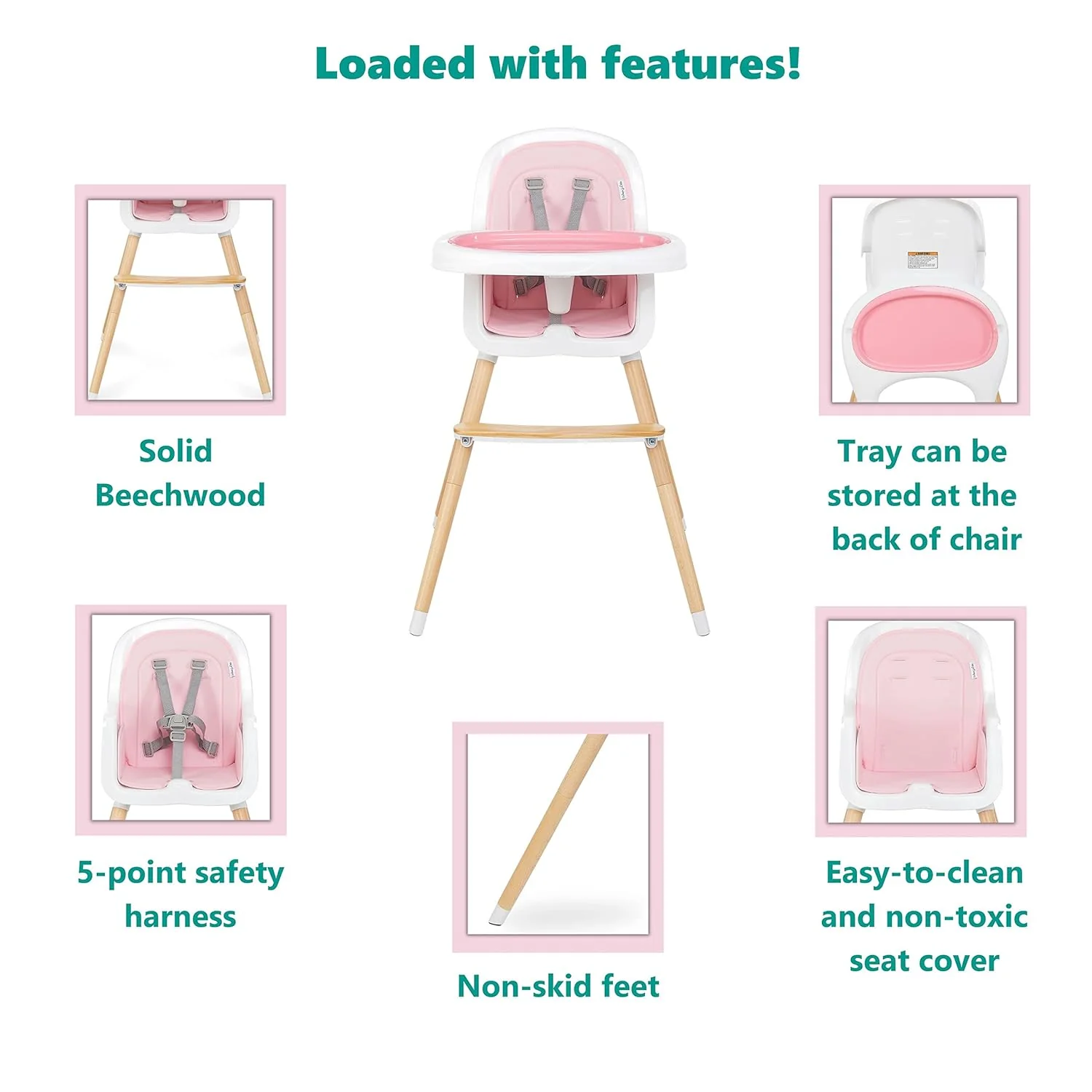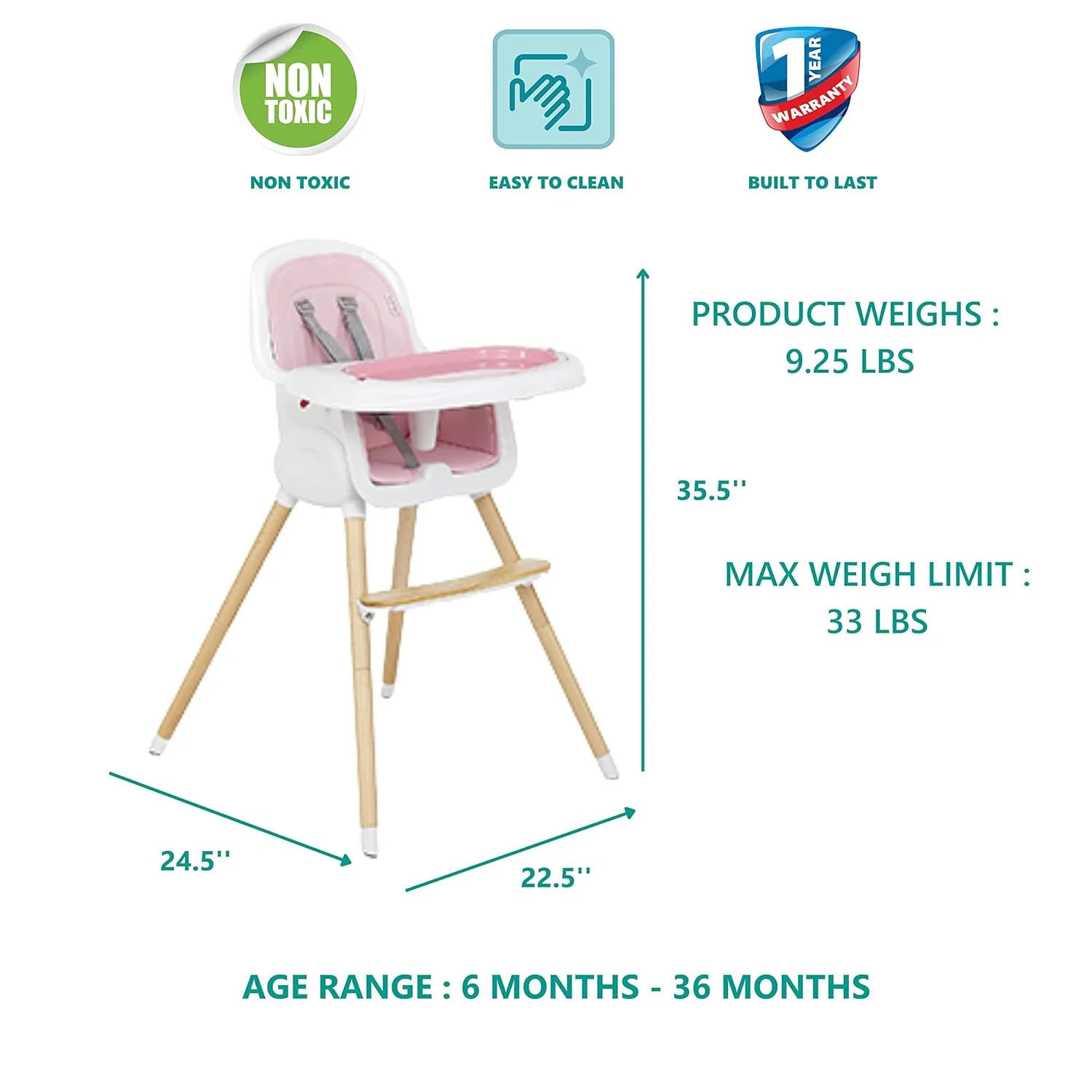 - MADE FOR YOUR HOME: This highchair is available in 4 fantastic finishes – Atlantis Green, Blush Pink, Black, and Light Grey.