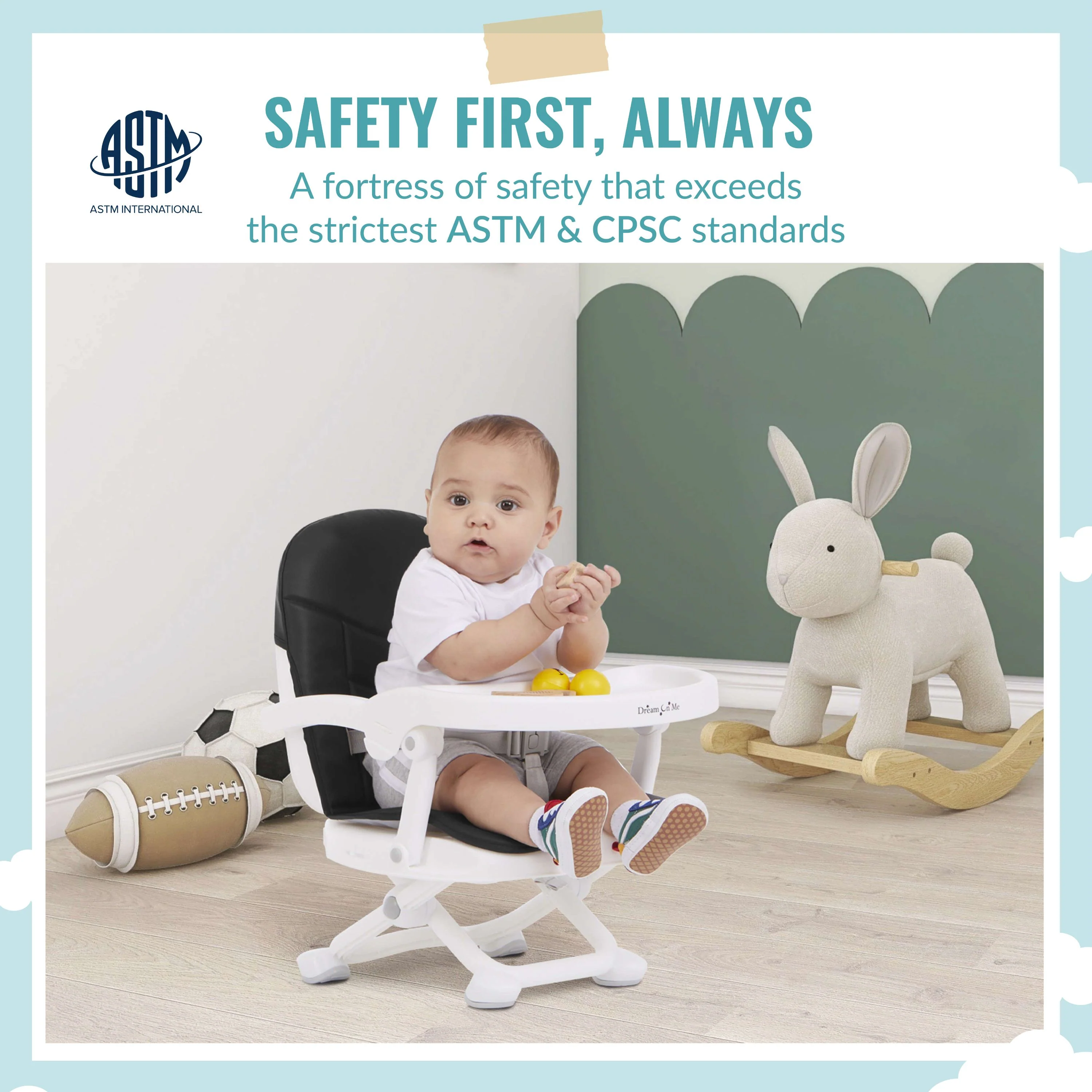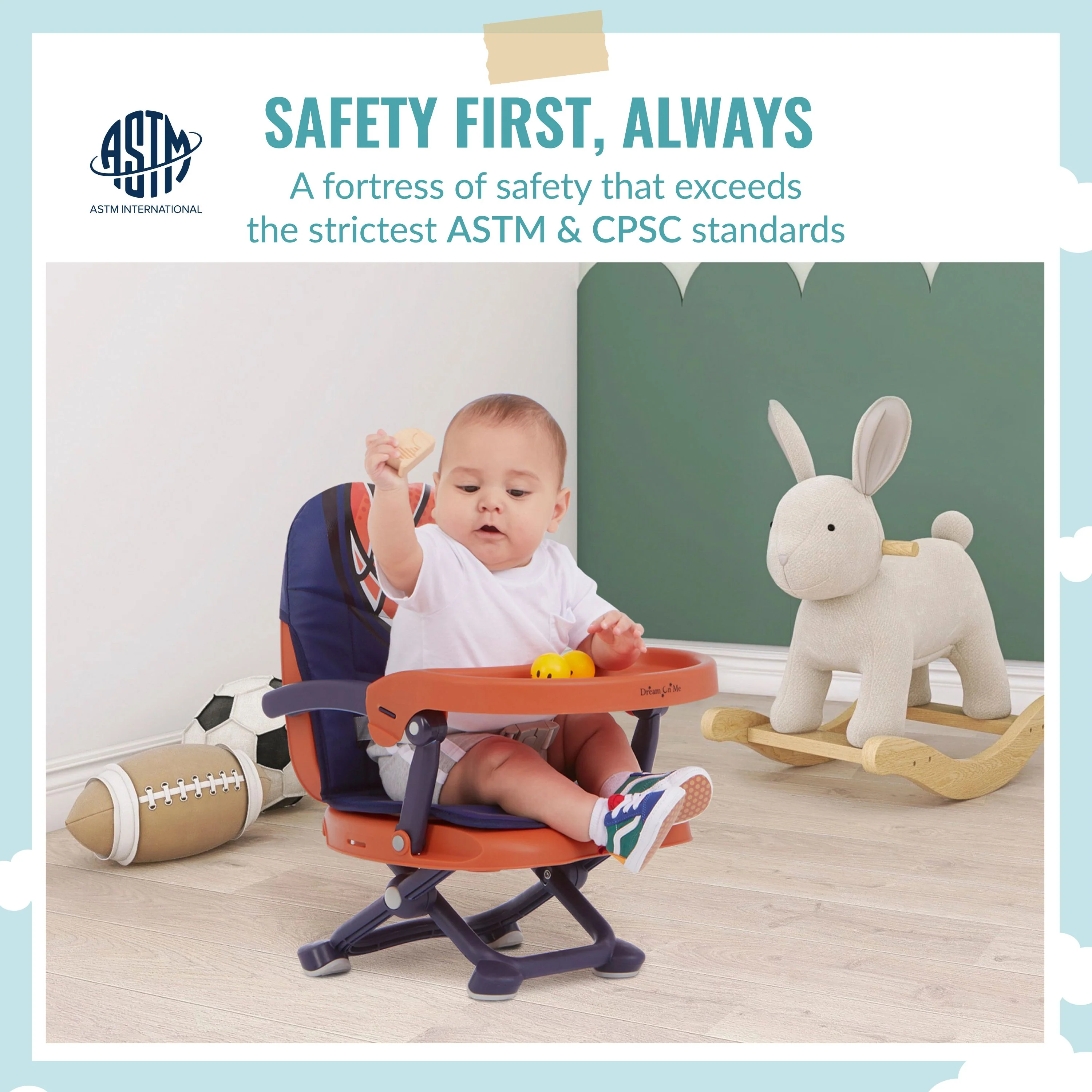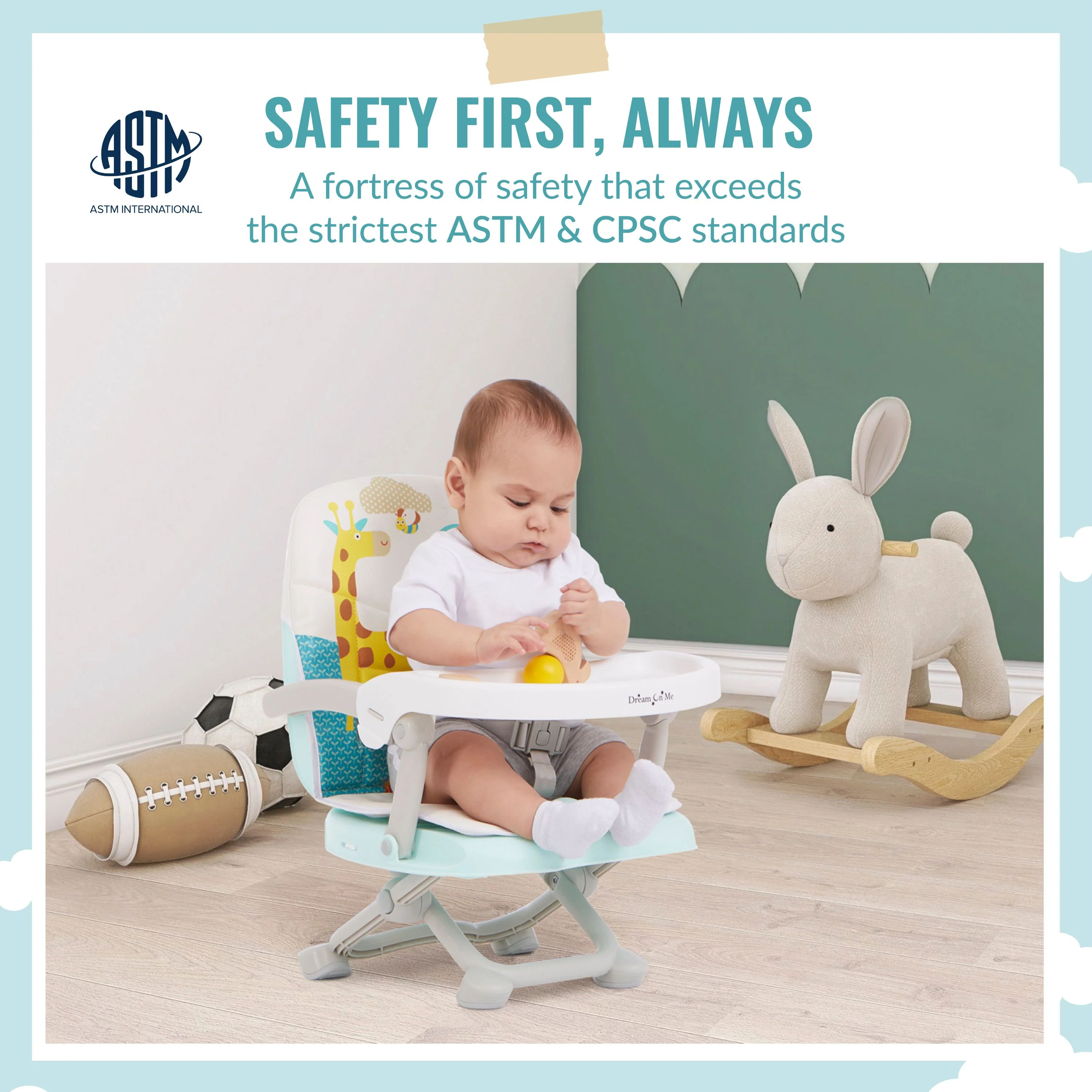 - The Dream On Me Munch N’ Go Booster Seat meets/exceeds all the safety standards set by ASTM & CPSC. Add a pop of color to your day, with this comfortable booster seat, available in vibrant finishes.