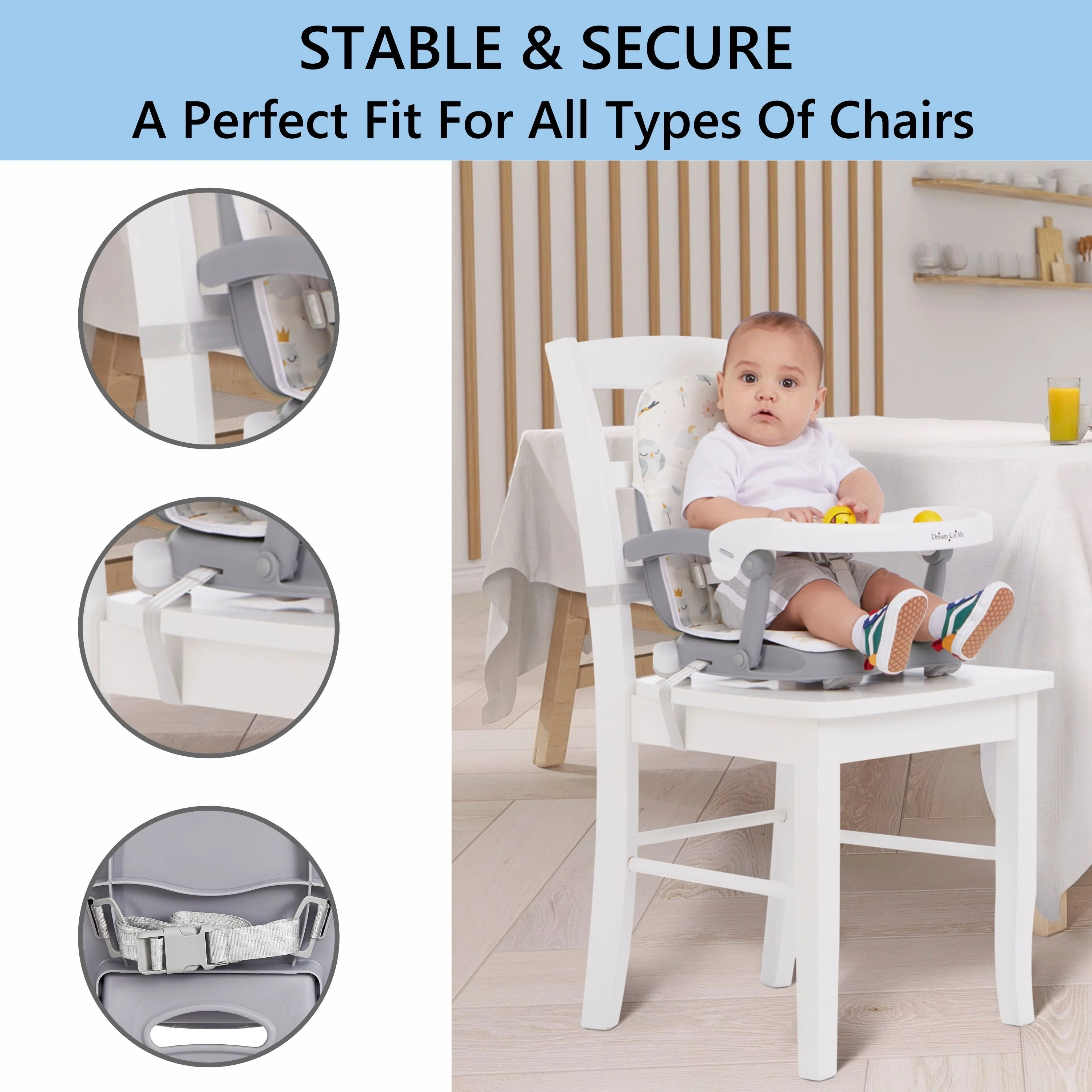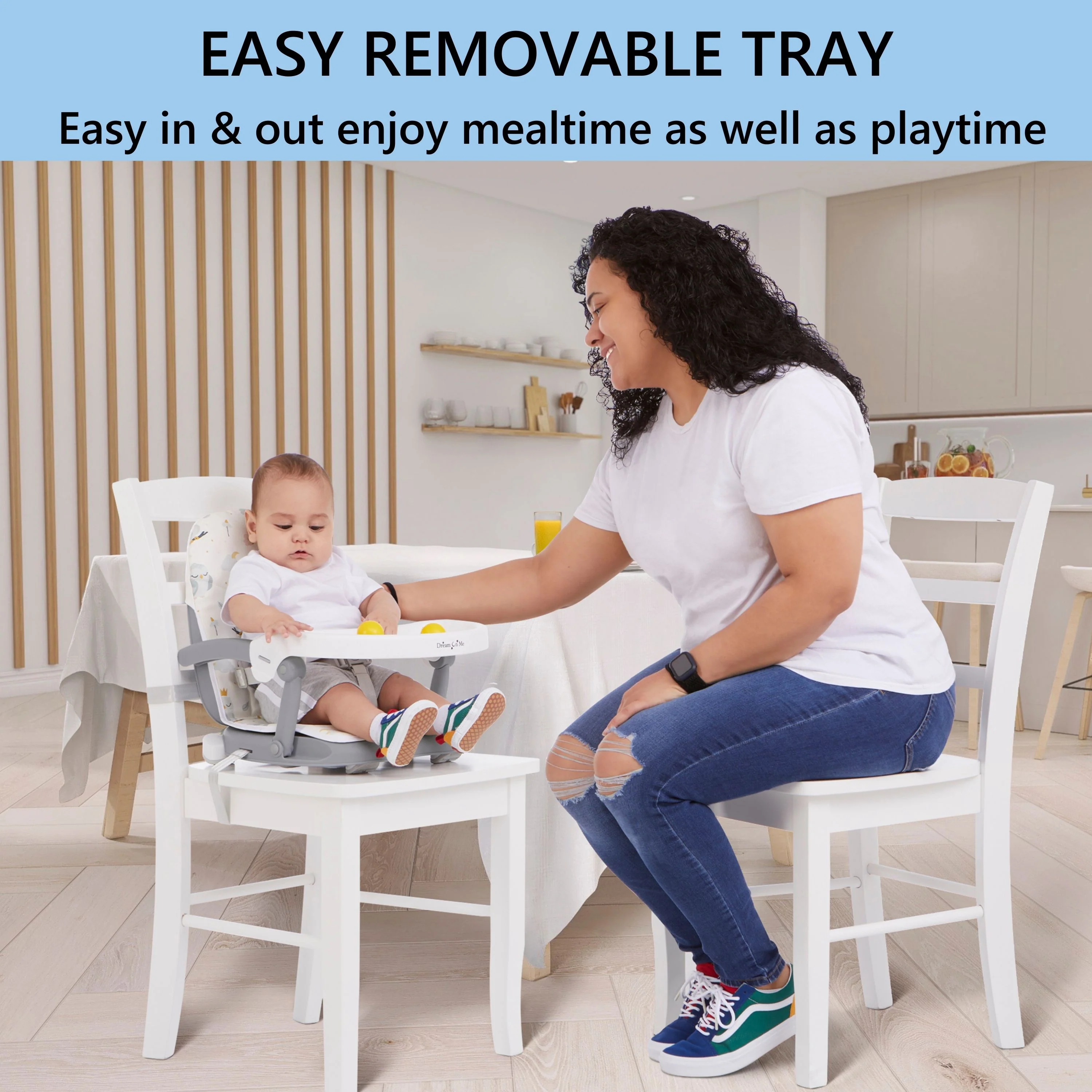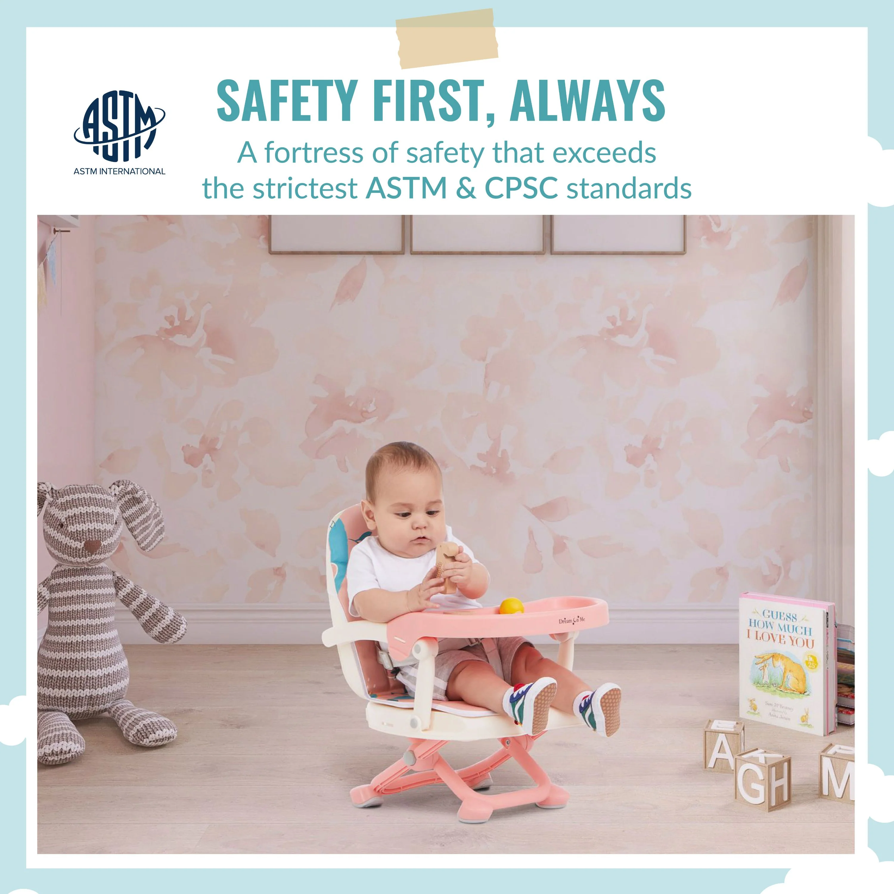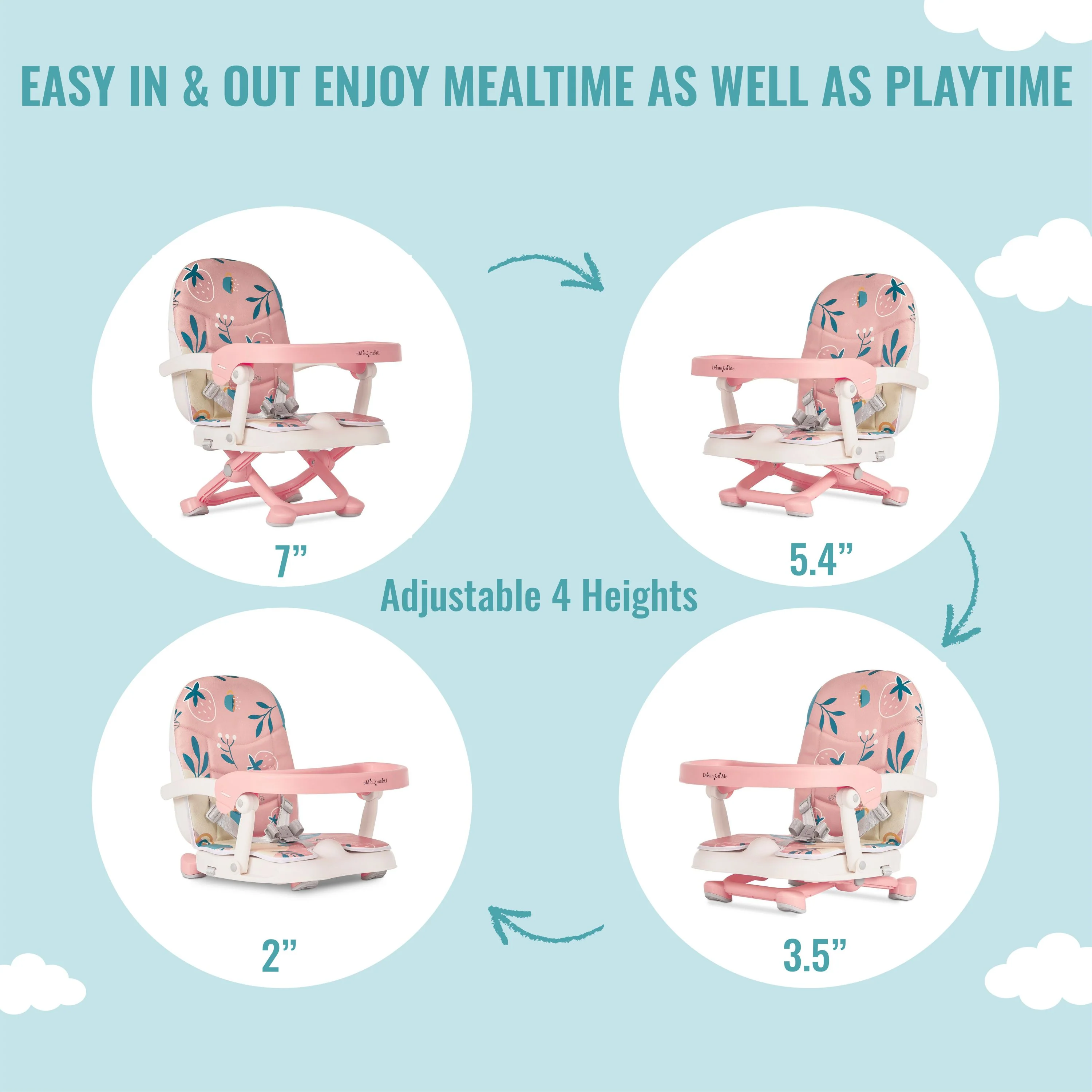 - Featured with 4 height adjustment settings, 3 point safety harness strap, a removable tray and an easy-to-clean cushion, mealtimes with your bub just got easier.