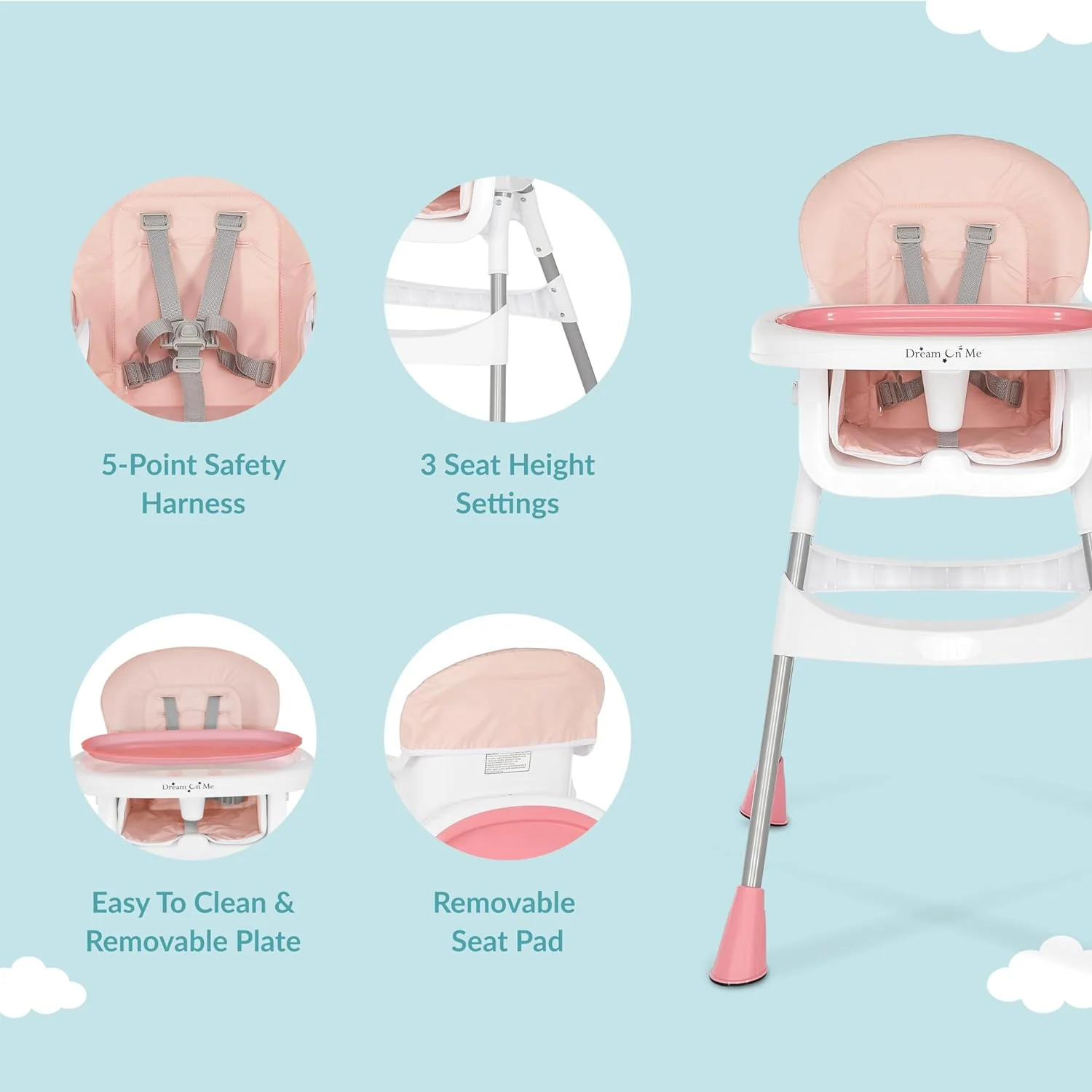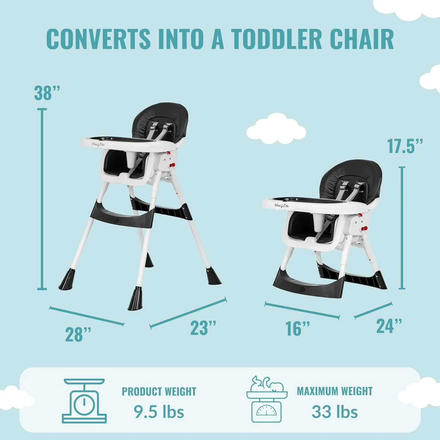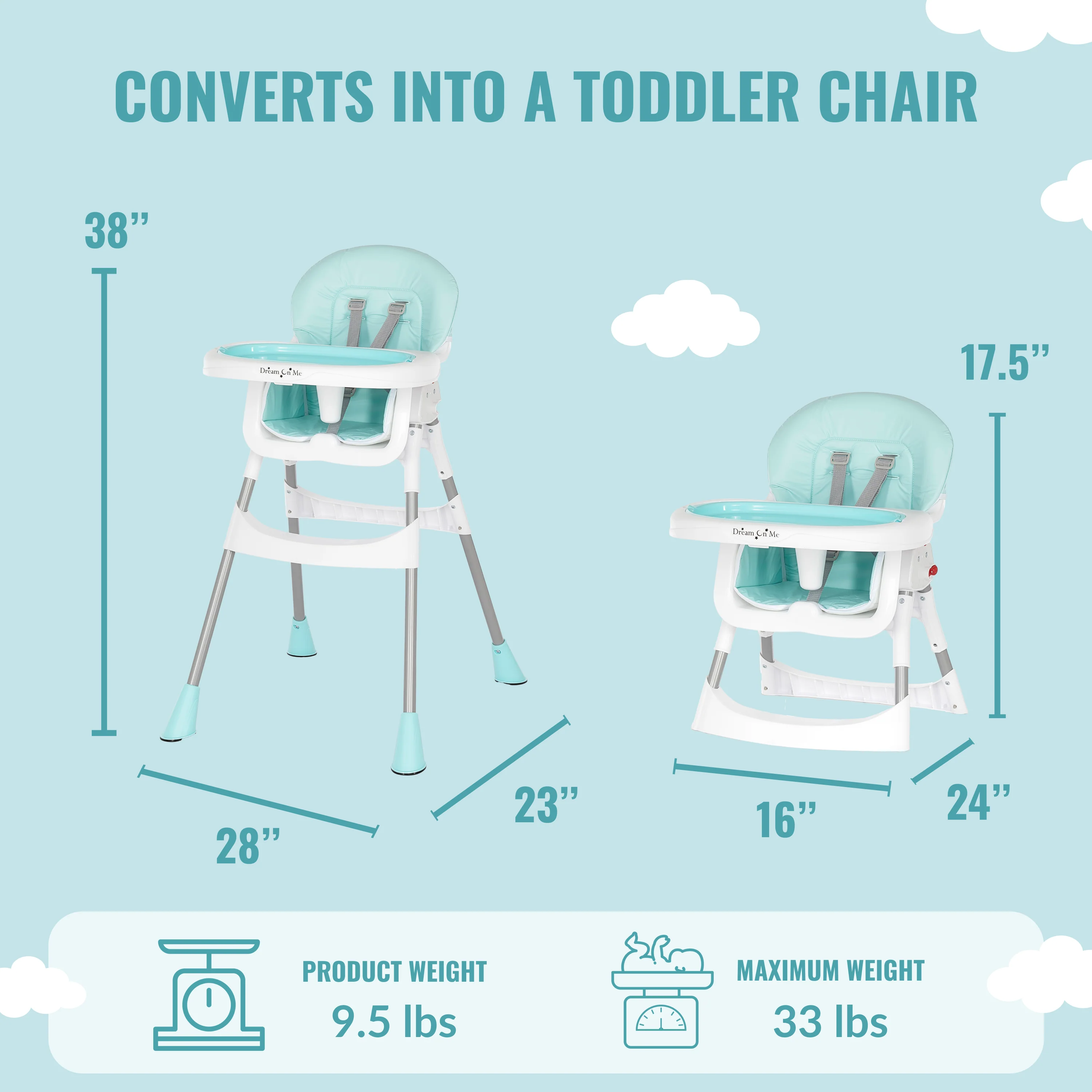 Is your baby ready for solid foods Is he or she prepared to taste new flavors and discover new textures Dream On Me presents the Portable 2-in-1 Tabletalk High Chair - a well built and affordable choice as your little one embarks on an exciting journey of food discovery
